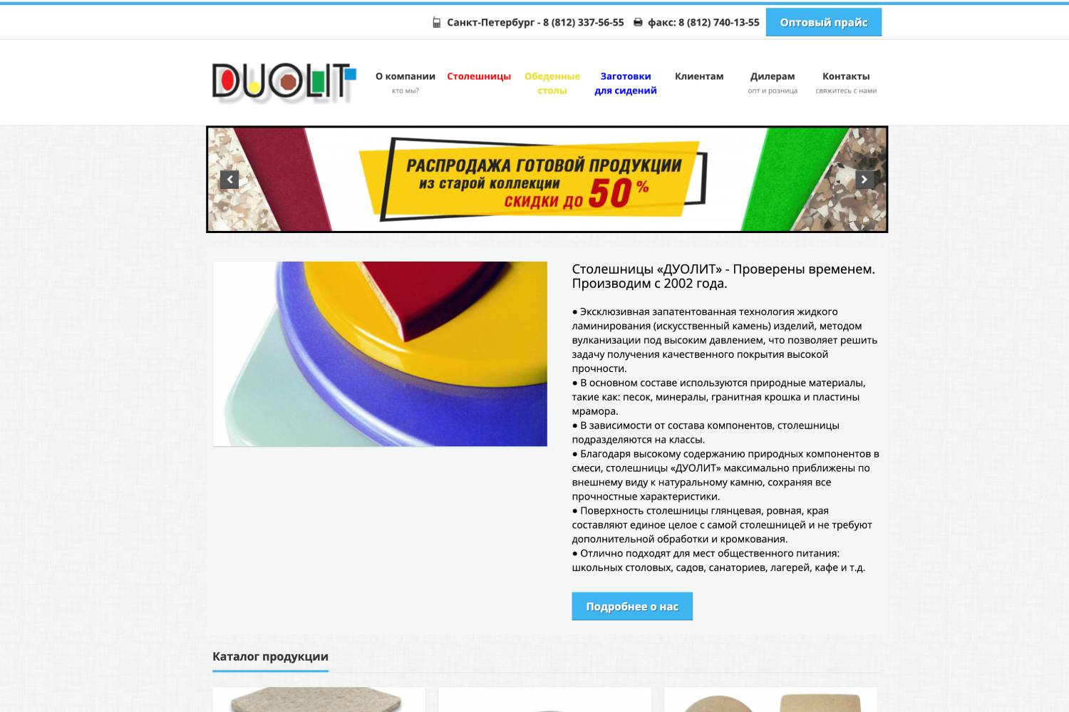 Компания Duolit работает в Санкт-Петербурге с 2002 года. Она специализируется на производстве столешниц из искусственного камня для обеденных зон кухонь, кафе, баров, ресторанов и столовых. В ассортименте представлены модели разных форм: круглые, овальные, квадратные, прямоугольные и восьмиугольные.