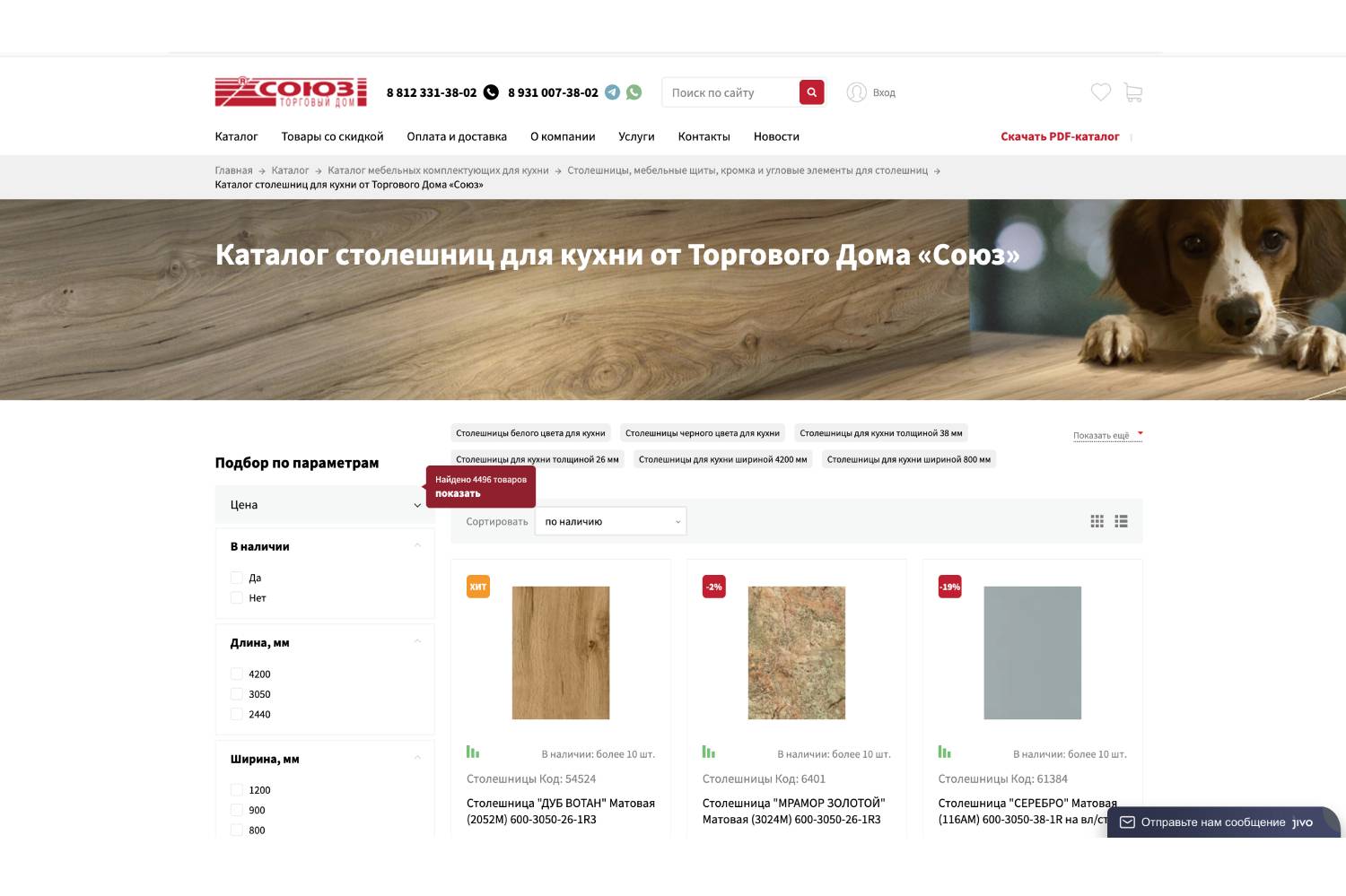 Промышленная группа «Союз» из Санкт-Петербурга реализует комплектующие для корпусной мебели оптом и в розницу. За более чем 20 лет работы компания открыла свыше 100 представительств в России и странах СНГ. Вся продукция, а это более 3000 наименований, выпускается на собственных производственных мощностях и проходит строгий контроль качества.
