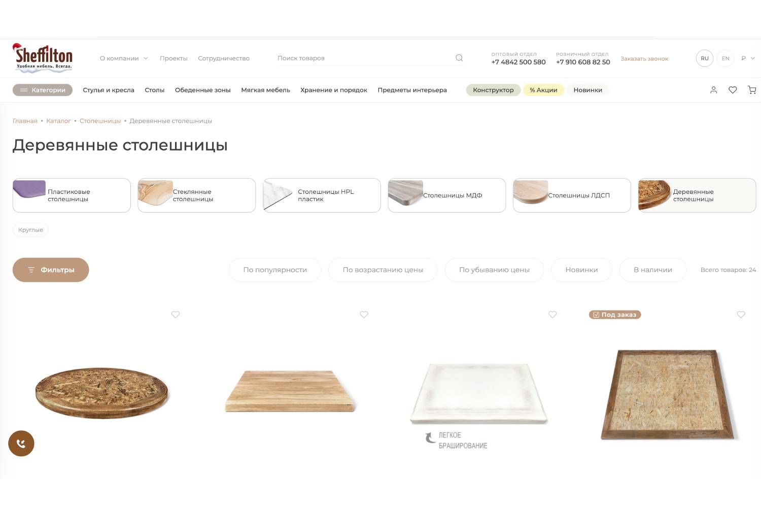 Компания создает столешницы из ясеня, дуба, карагача и вишни, используя классические технологии (ламельный или сращенный массив) или дизайнерские решения: слэбы (плиты), переклеенные широкие доски, торцевые спилы или модели с живым краем. Возможно производство изделий любых размеров и форм.