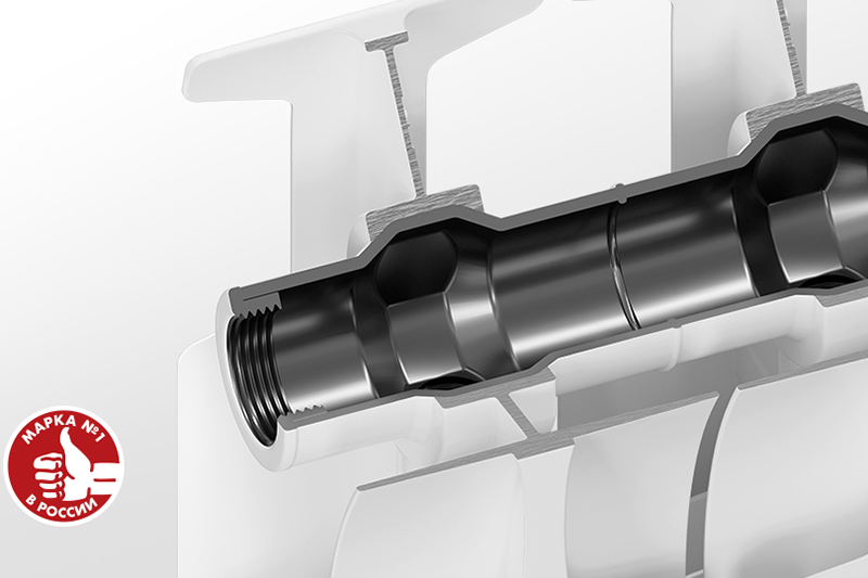 Радиатор изготовлен без сварных швов, герметичность межсекционных соединений достигается за счет уплотнителей O-ring. Такая конструкция рассчитана на рабочее давление до 40 атмосфер — ему не страшны гидроудары. Стальной сердечник устойчив к коррозии и может использоваться с теплоносителем низкого качества (показатель pH от 7 до 9,5). У изделий достаточно большой гарантийный срок — 20 лет.
