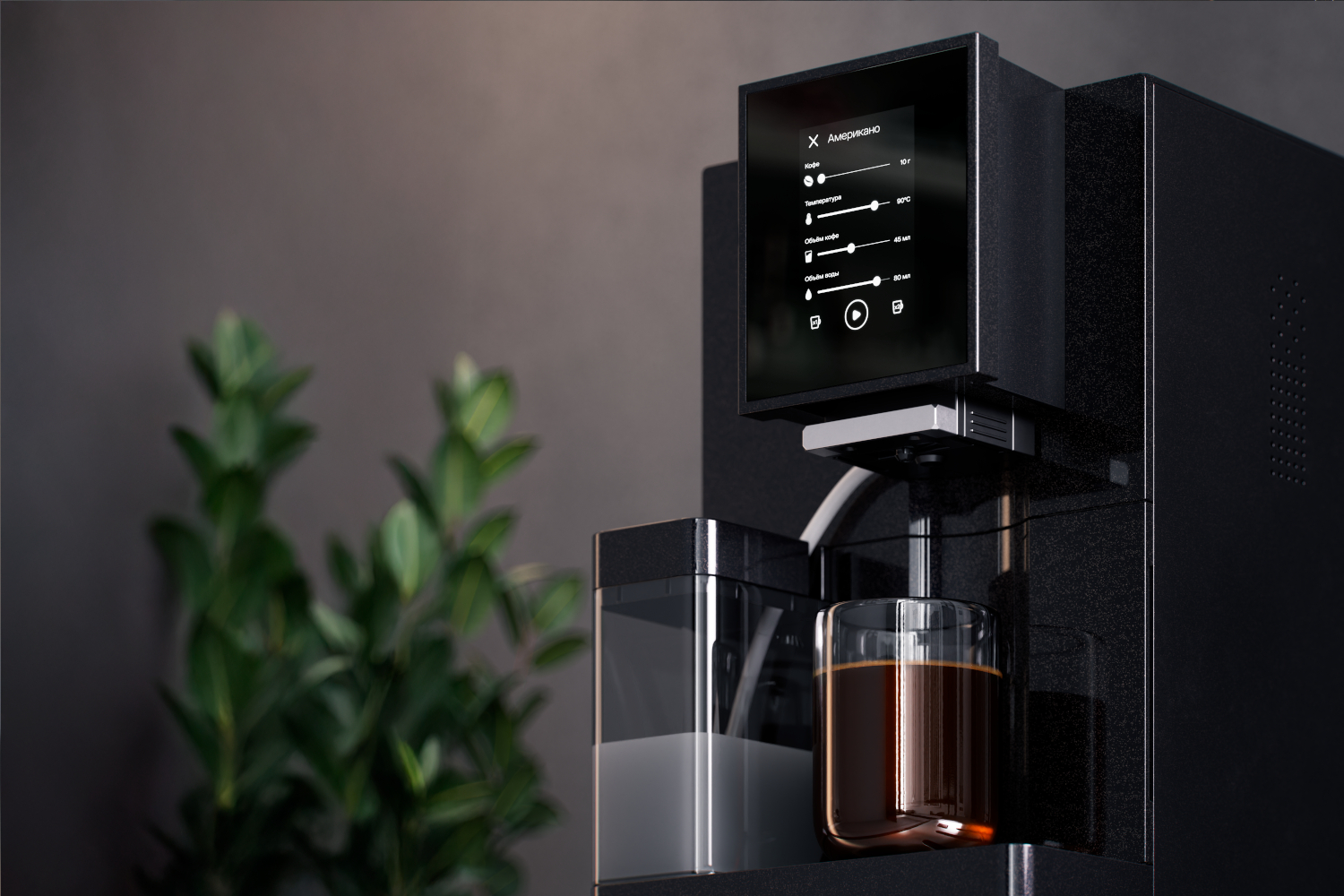 Процесс приготовления запускается на сенсорной панели, отключение автоматическое. На дисплее доступна регулировка крепости, объема и температуры напитка. Автокапучинатор также активируется касанием. После каждой подачи молока оборудование предлагает процедуру самоочистки.