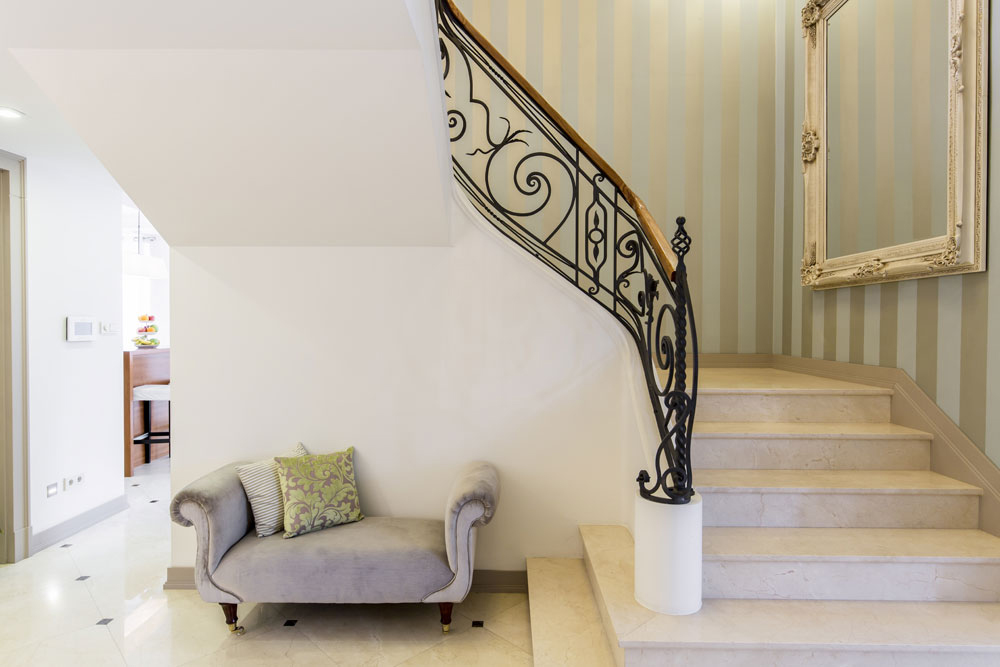 - металл используется в качестве декора, например, хорошо смотрятся изящные кованые лестничные перила;