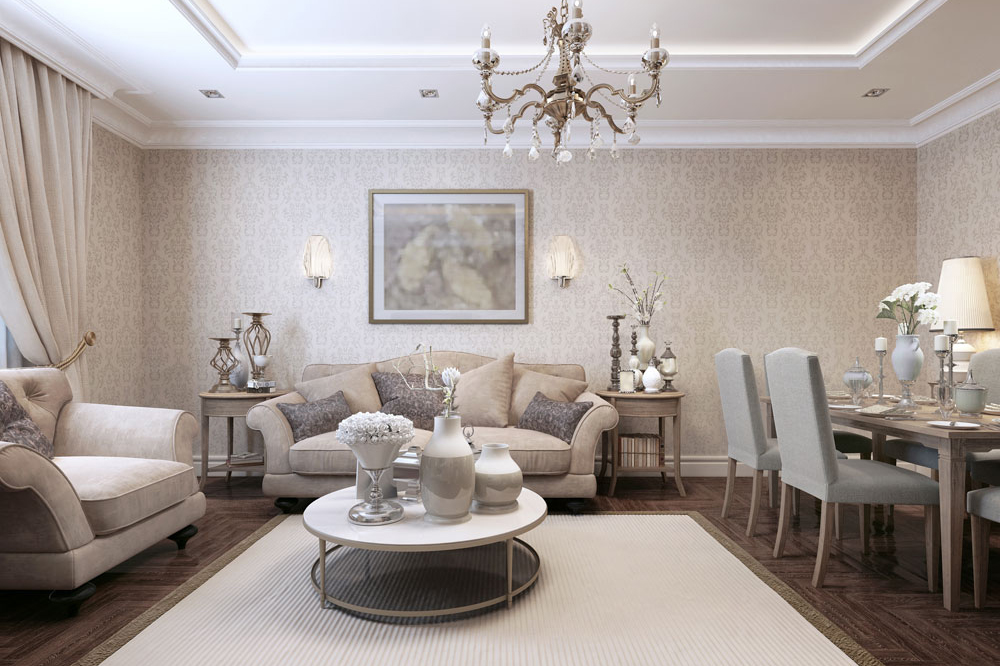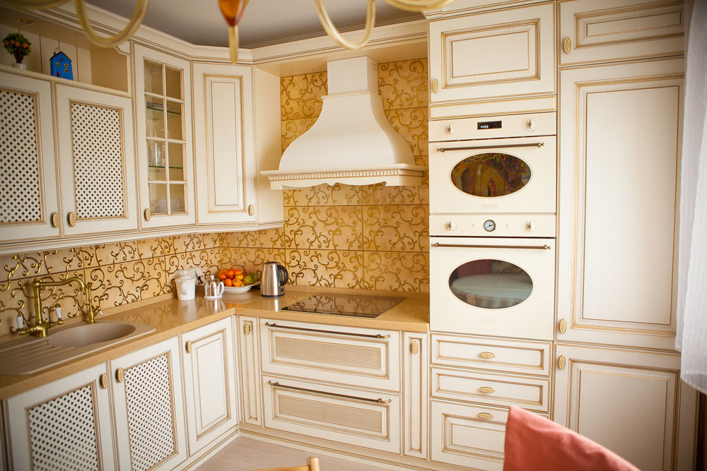 - цветовая палитра включает в себя такие оттенки, как кремовый, песочный, персиковый, сливочный. Эти нежные цвета особенно удачно сочетаются с плавностью линий и образуют завершенный элегантный интерьер;