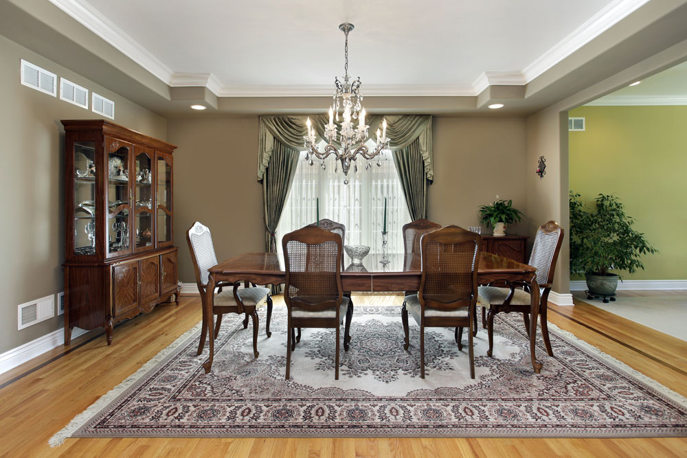 Пол должен органично сочетаться с остальными элементами интерьера. Приветствуется спокойная цветовая гамма напольного покрытия, вписывающаяся в общий декор помещения. Большой популярностью пользуется паркет из натурального дерева и дикого камня. Современные технологии позволяют выполнить элегантный рисунок, в том числе, и на диком камне.