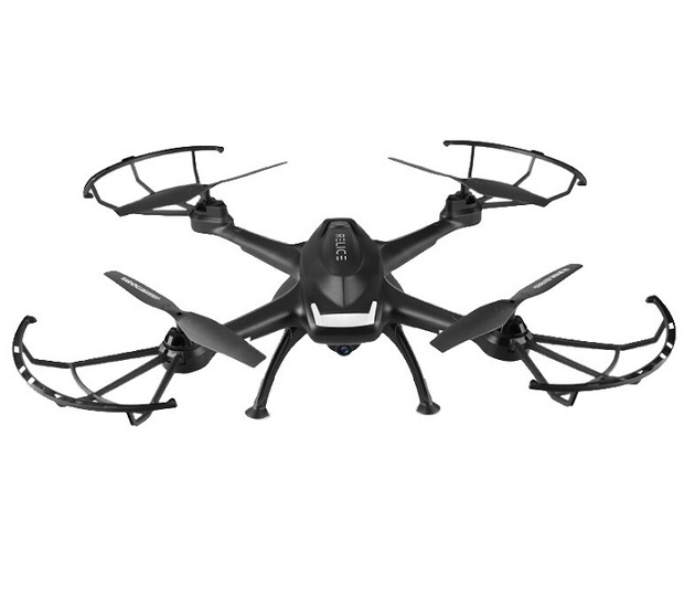 Достаточно крупная модель от китайского производителя бытовой электроники. При неказистой внешности демонстрирует неплохие летные характеристики. Управление осуществляется либо по WiFi, либо по радиоканалу. Последний позволяет контролировать дрон на расстоянии до 100 м. Правда, эта модель имеет неприятную странность, с которой сталкивались некоторые пользователи. Квадрокоптер при управлении с телефона может внезапно потерять связь и «улететь в закат». Из-за того, что JXD 507W не оснащен GPS, то сам вернуться к месту запуска он не сможет. Впрочем, проблема не носит массового характера. Дрон оснащен камерой, способной снимать видео в качестве 1280 x 720 пикселей. Но учтите, что сделать снимок или начать писать видео с пульта управления здесь не получится.