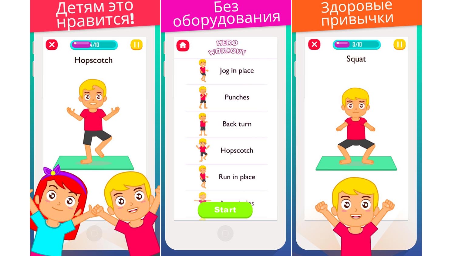 Установка возможна на устройства с Android и iOS. По отзывам родителей, занятия в игровой форме нравятся детям, помогают похудеть, приложение полностью бесплатное. Единственный недостаток — интерфейс на английском языке.