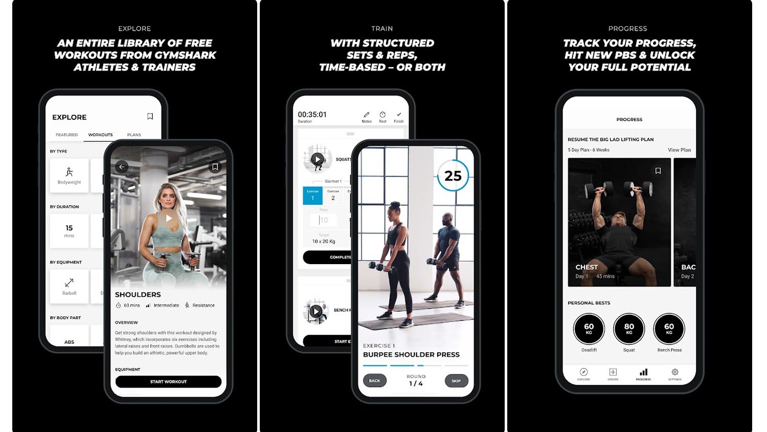 Приложение Gymshark Training предлагает доступ к тысяче бесплатных тренировок, разработанных профессиональными тренерами и спортсменами. Оно помогает сформировать полезные привычки — от обычной ходьбы до занятий в тренажерном зале, годовых планов бега и других активностей.