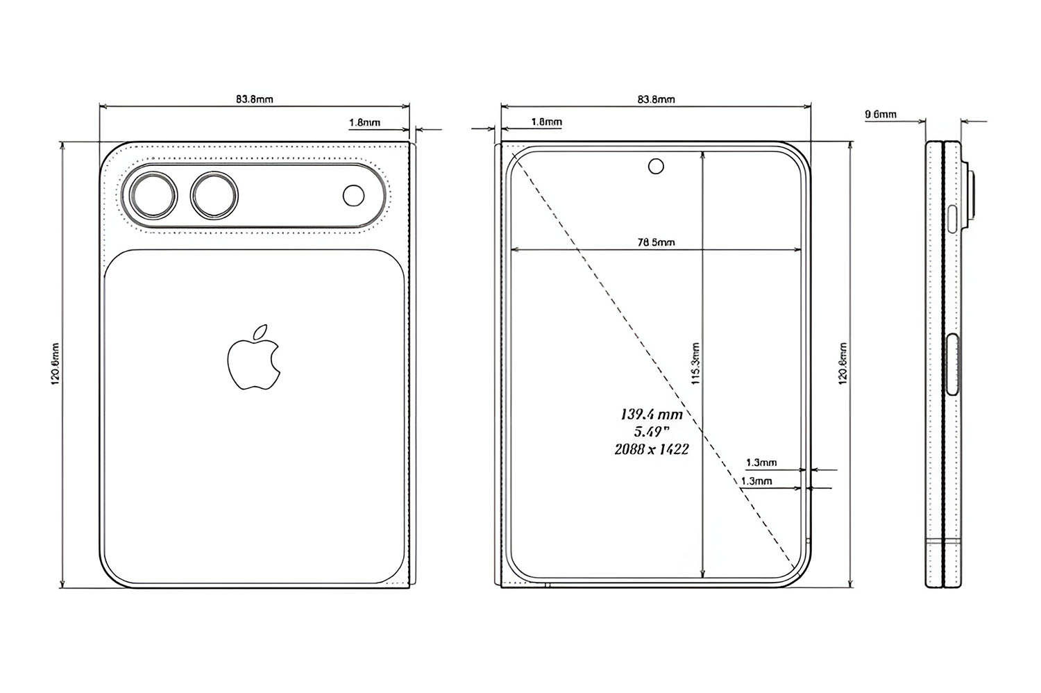 Размеры экрана ожидаются около 7-8 дюймов в разложенном виде5: что больше, чем у iPhone 16 или 17 Pro Max. Возможно, экрана будет два6: один поменьше около 5,5 дюйма (разрешением 2088 × 1422 пикс), располагается на задней крышке смартфона, второй — в разложенном виде те самые 7-8 дюймов (разрешение 2713 × 1920 пикс). Второй экран нужен, чтобы пользоваться телефоном в сложенном положении.