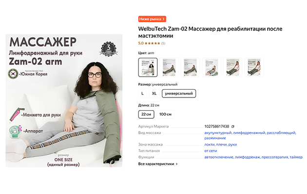 | Назначение | лимфодренаж, снятие отеков, реабилитация после мастэктомии |