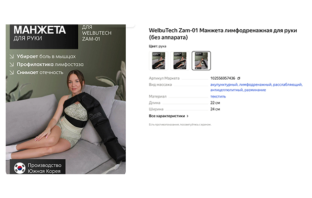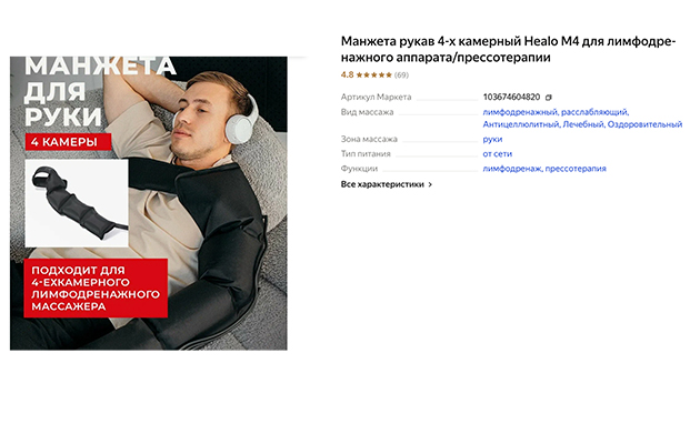 Четырехкамерная манжета помогает при болезненных ощущениях в плече, руке и ключице. Можно регулировать размер под индивидуальные габариты пользователя. Однако некоторые покупатели отмечают в отзывах, что для полных конечностей использование аппарата может оказаться менее комфортным, чем для тонких. Износостойкий материал обладает водонепроницаемым покрытием, что облегчает уход и продлевает срок службы. Помимо оздоровительного и лимфодренажного воздействия, можно рассчитывать на расслабляющий и антицеллюлитный массаж.
