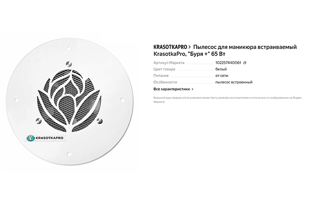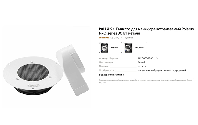 Встраиваемая вытяжка Polarus PRO-series имеет мощность 80 Вт. Металлический корпус оснащен мощным вентилятором и прочной решеткой. Пылесос имеет систему фильтрации. Хорошая базовая техника для мастера маникюра, но вот что отмечают покупатели. Сборка не очень качественна: отверстия решетки несимметричны, винтики длинные, сам корпус местами сварен некрасиво. Хоть производитель и утверждает, что вытяжка практически не шумит, отзывы говорят об обратном. Но это если придираться. В остальном — долговечный пылесос, простейший в установке. В комплекте к нему идут мешочки.