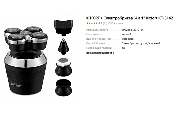 Kitfort KT-3142 — универсальное устройство для ухода за волосами на лице и голове, оснащенное роторной насадкой с пятью плавающими головками. Прибор предназначен для сухого бритья, а его съемные насадки имеют степень влагозащиты, позволяющую промывать режущие блоки под проточной водой после использования.