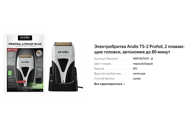 Шейвер оснащен DC-мотором, работающим на 9000 об/мин и подходит для профессионального и домашнего использования. Два самостоятельных плавающих блока эффективно срезают одно-двухдневную щетину длиной 1-2 мм. Барберы с помощью Andis создают четкость линий и применяют при фейдинге (постепенном переходе длины). В блоках стоят лезвия из углеродистой стали. Титановые сетки с золотым покрытием оберегают от мелких порезов и раздражений.