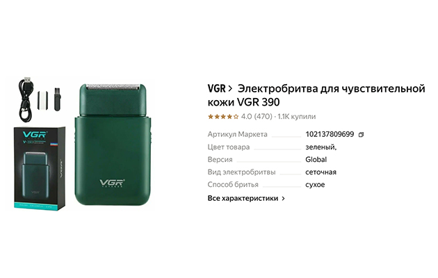 Портативный сеточный шейвер VGR создан для сухого и влажного бритья короткой щетины. Деликатное бритье не раздражает даже чувствительную кожу. Шейвер точно следует лицевым контурам, а откидной триммер сможет обработать труднодоступные участки кожи.