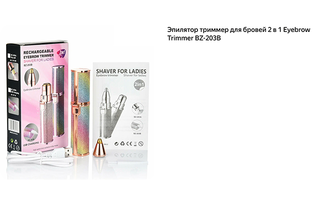 | Количество насадок | 2 насадки: узкая для бровей, цилиндрическая для других зон |