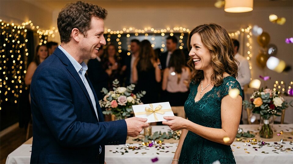 Если у вас небольшой бюджет, вы можете скинуться с другими гостями и подарить общий конверт. И самое главное — интересно преподнести: с необычной подачей, красивым поздравлением.