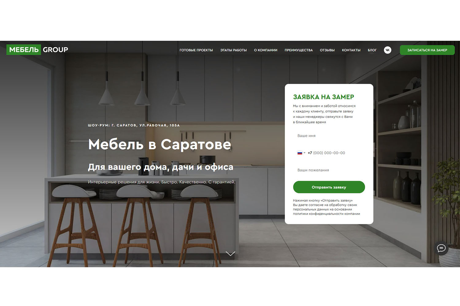 Компания регулярно проводит акции и скидки, информацию о которых размещает на официальном сайте. Вы можете оставить заявку на бесплатные дизайн-проект и замер. Производство расположено только в Саратове, поэтому в период сильной загрузки срок изготовления и доставки заказа может быть увеличен.