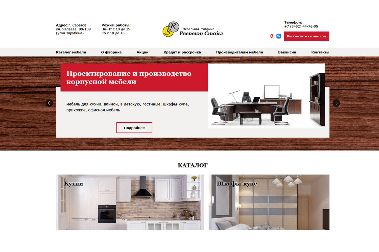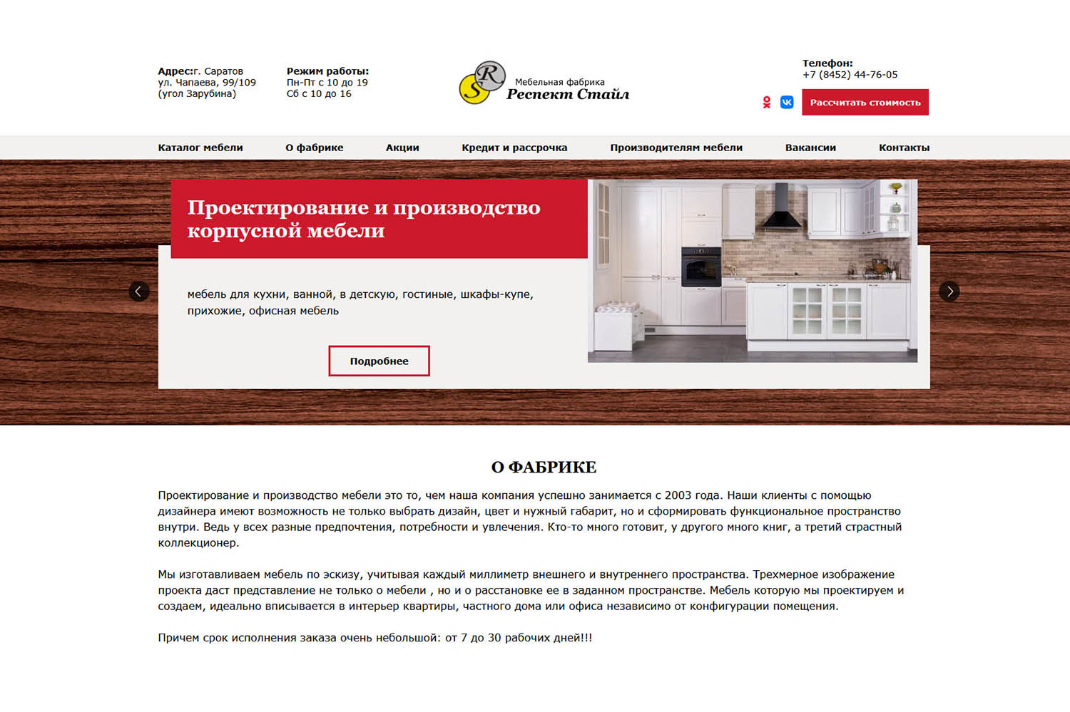 «Респект Стайл» занимается проектированием и производством мебели с 2003 года. Компания предлагает свои услуги не только владельцам квартир и частных домов, но и изготавливает мебель для бизнеса (ресепшн, переговорные, витрины и прочее) и государственных учреждений (МФЦ, библиотек, ФНС). В каталоге шкафы-купе, гардеробные, кухонные гарнитуры, наборы мебели для детских, гостиных, прихожих, ванных комнат.