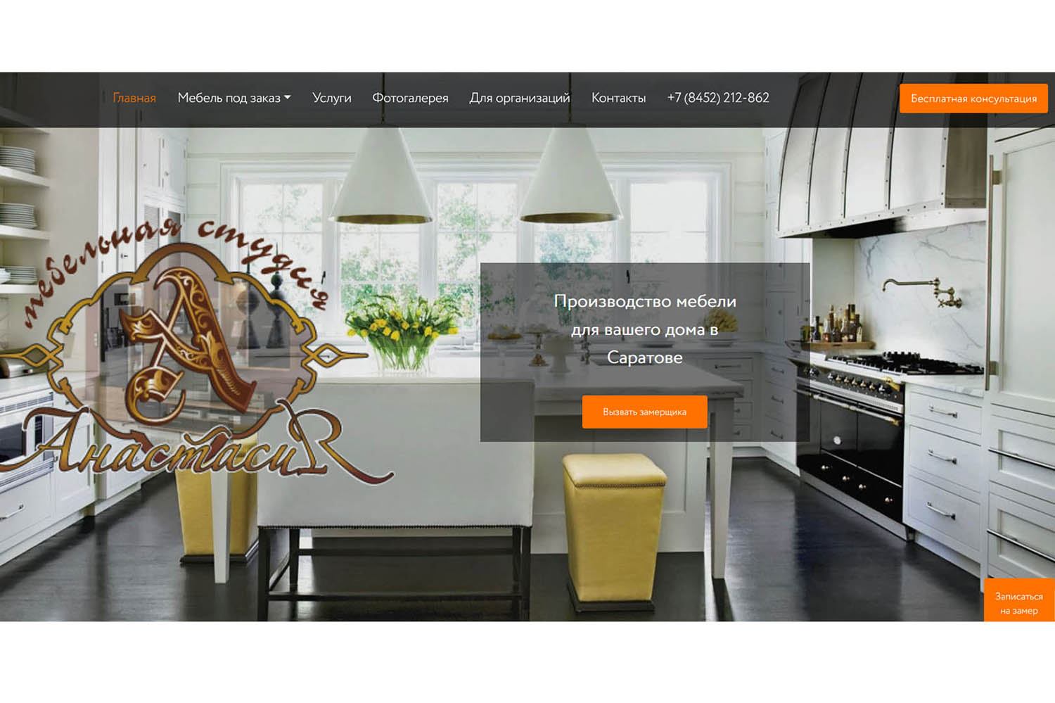 Компания «Анастасия» производит в Саратове по индивидуальным проектам мебель для гостиных, кухонные гарнитуры, шкафы-купе. Также выполняются заказы на мебель из металла как для дома, так и для офисов, кафе, учебных заведений.