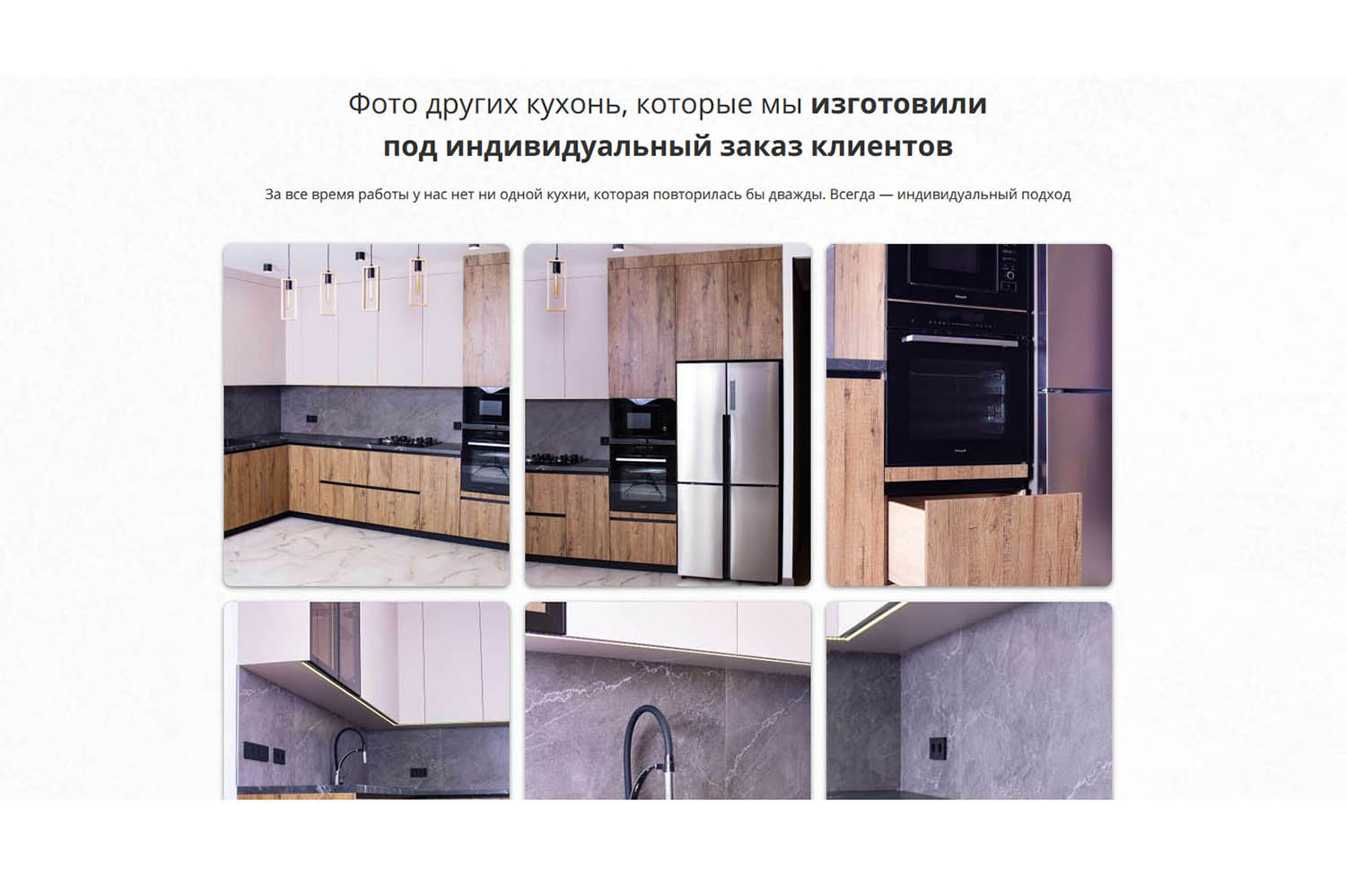 Компания специализируется на изготовлении кухонь. В ассортименте прямые, угловые, П-образные и гарнитуры с островом. Клиентам предлагается более 2500 оттенков фасадов, основа — МДФ с покрытием ANTIFINGER, на котором не остаются отпечатки пальцев. Столешницы изготавливают из искусственного камня, кварцевого агломерата. Используется фурнитура от европейских производителей: Hettich, Blum и Hafele.