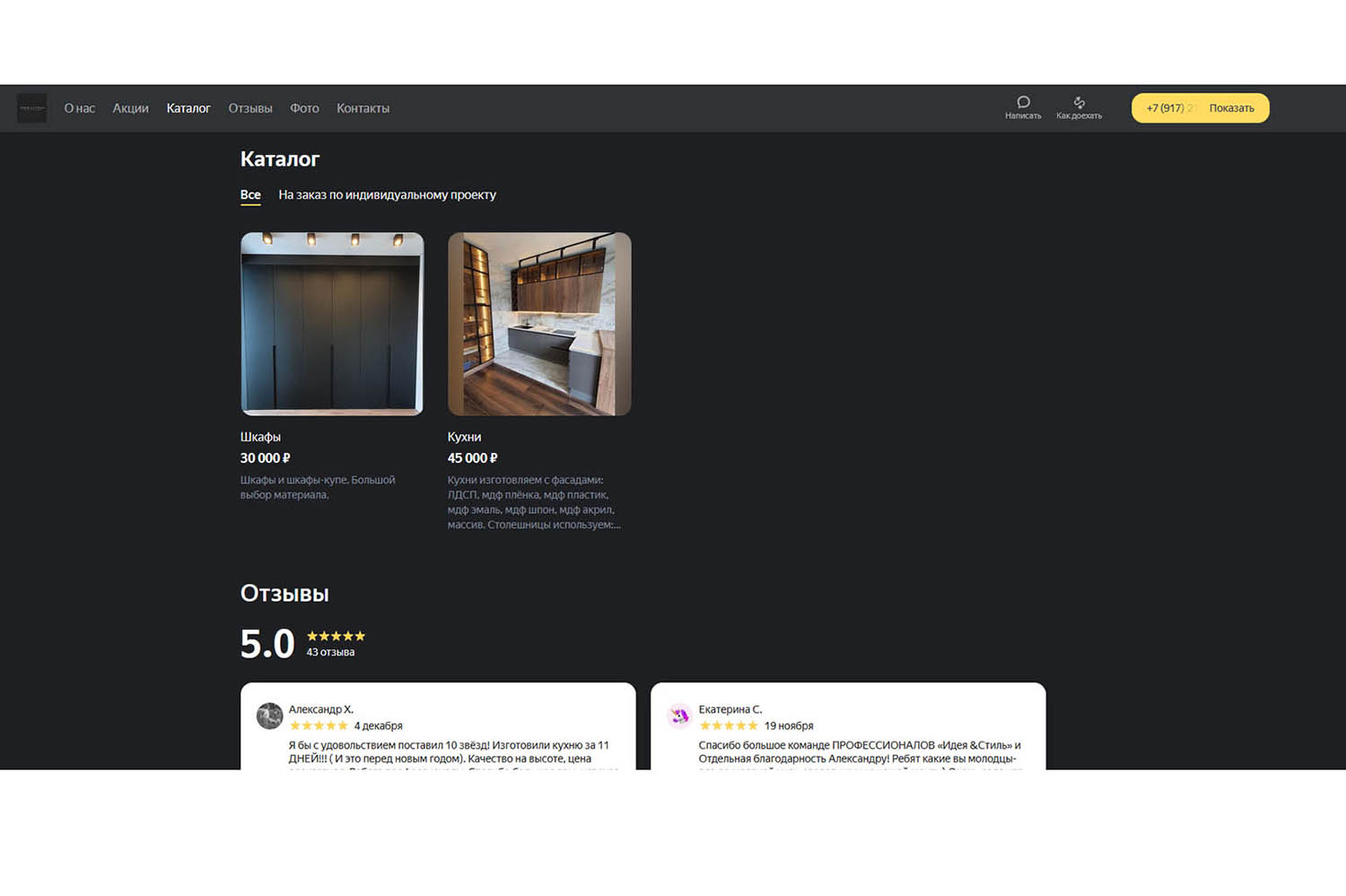 Чем дольше компания работает на рынке, тем выше вероятность, что ее производственные и бизнес-процессы отлажены, а клиенты довольны результатами. Опытные игроки обладают собственными наработками, понимают нюансы планировки и материалов, а также предлагают комплексный подход: от выезда дизайнера на замер до монтажа готовой продукции с гарантией. Уточните дату основания и проверьте репутацию — эти данные обычно есть в открытых источниках.