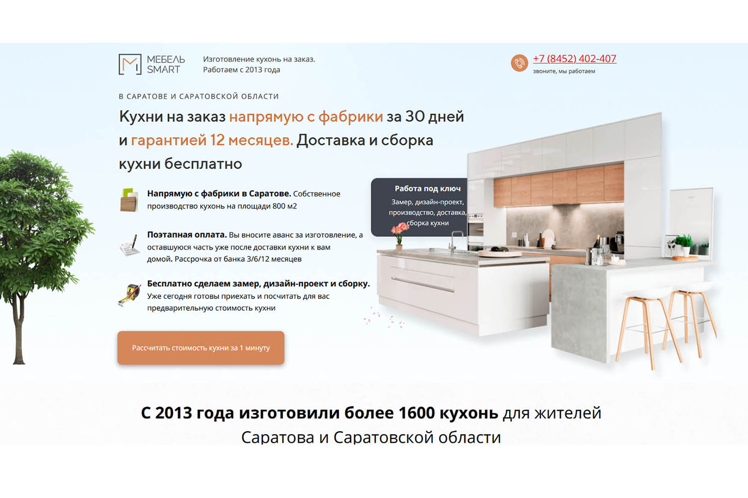 Выезд замерщика осуществляется по городу и Саратовской области. Бесплатно предлагается составление дизайн-проекта, сборка и установка кухни. Связаться с «Мебель Smart» можно несколькими способами: через онлайн-форму на официальном сайте, по телефону и лично, посетив шоу-рум в Саратове. При оплате заказа клиент может оформить рассрочку на 3, 6 и 12 месяцев.