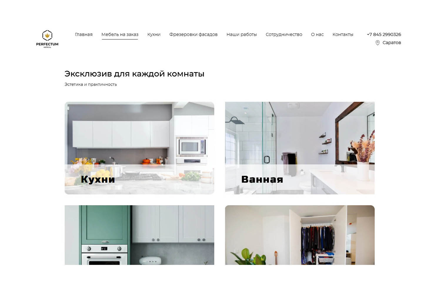 Perfectum с 2012 года работает на рынке мебели в Саратове. Компания изготавливает кухонные гарнитуры, шкафы, гардеробные, столы, кровати, тумбы, наборы для ванной и прихожей.