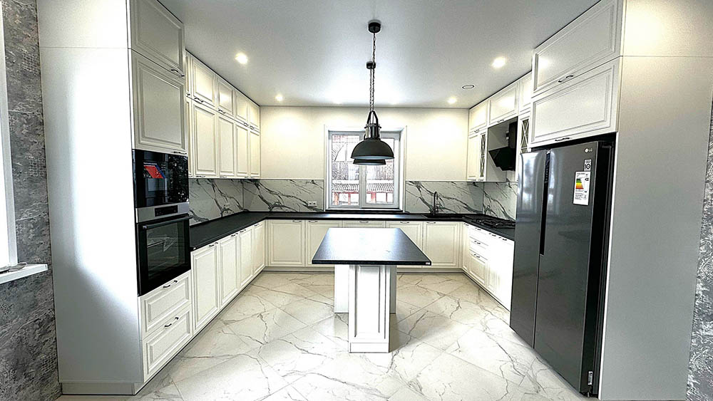 • Проверьте монтаж: фасады установлены ровно, петли работают, нет зазоров, столешницы нивелированы, розетки/встраиваемая техника установлены без дефектов.