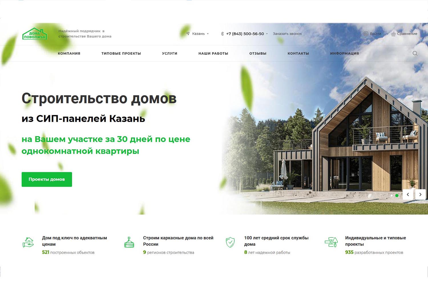 Компания «Дома Поволжья» работает на рынке малоэтажного строительства с 2016 года. Возводит каркасные дома «под ключ» в Казани и на территории Поволжья. У компании собственное производство СИП-панелей в Республике Марий Эл. Одно из преимуществ каркасных сооружений в том, что они быстро собираются — за 1-2 месяца (в зависимости от площади). Гарантия от подрядчика на работы — пять лет.