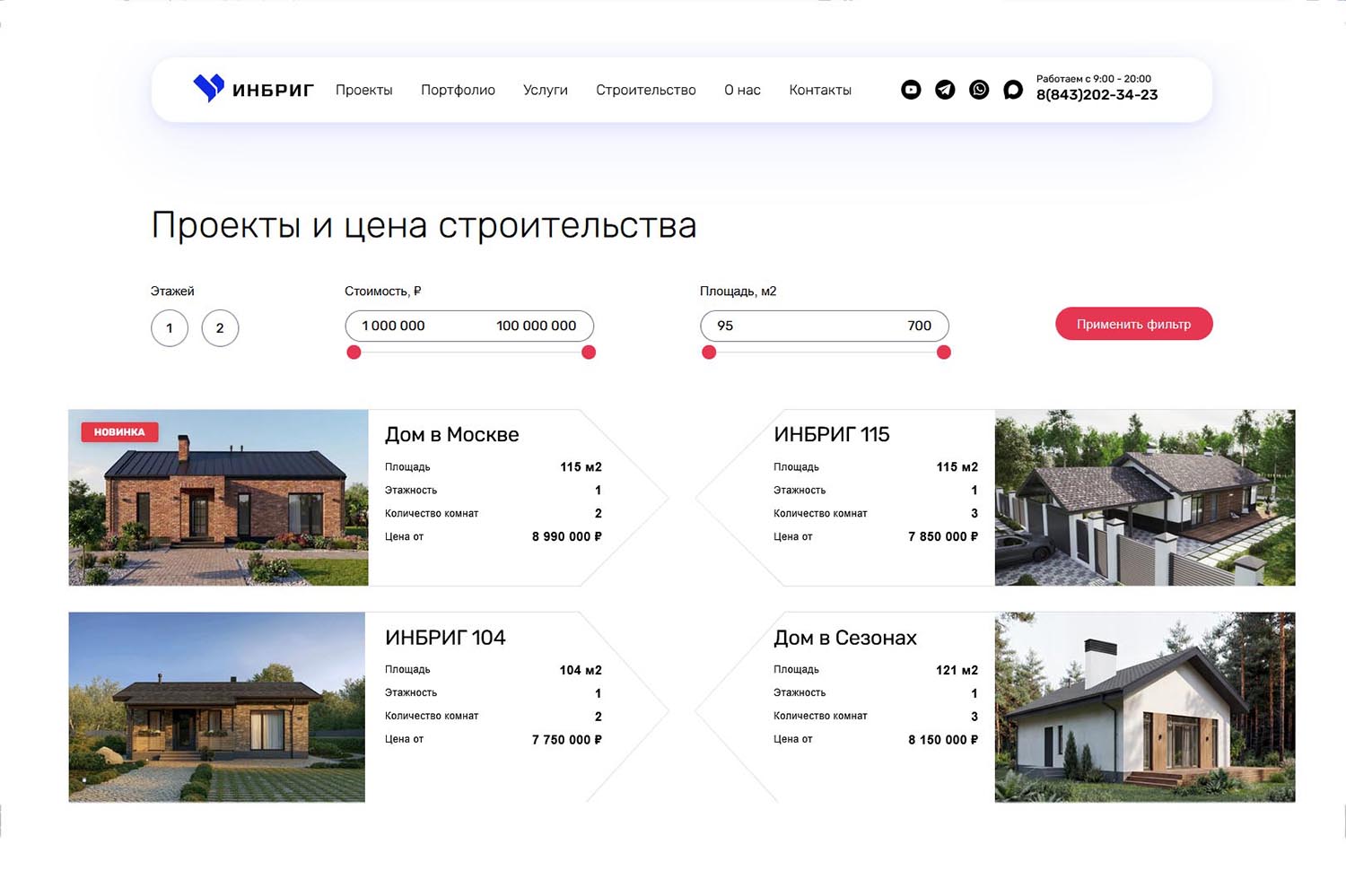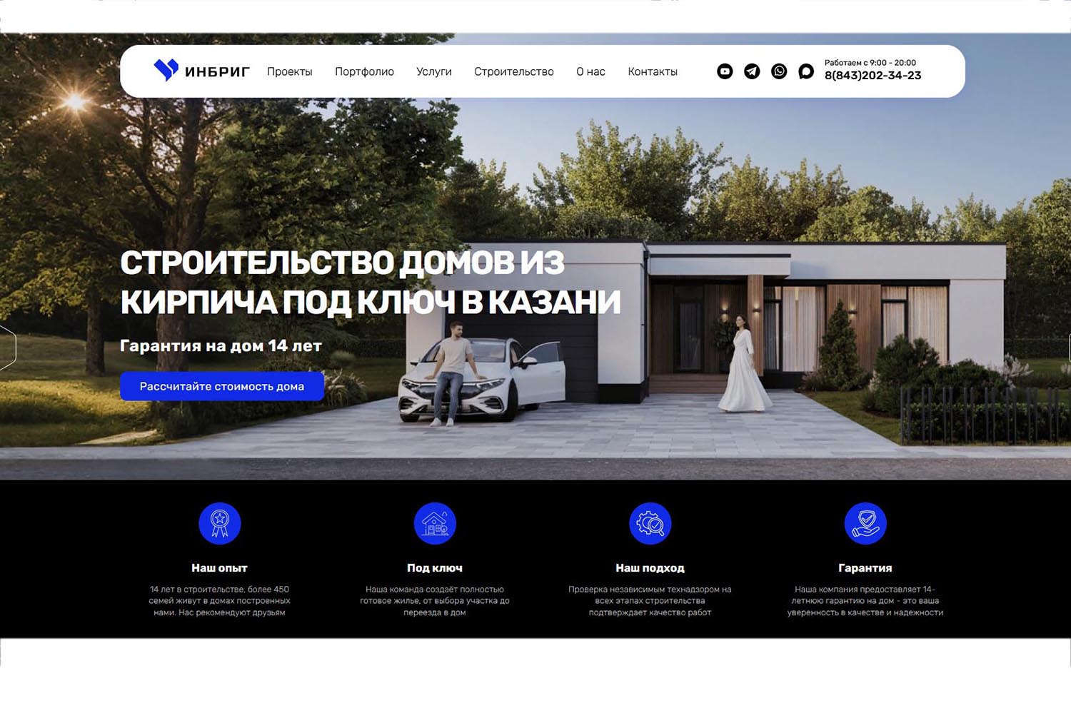 «ИНБРИГ» — строительная компания, специализирующаяся на проектировании и возведении загородных домов в Татарстане и соседних регионах (Чувашии, Марий Эл, Московской области и других). Организация выполняет полный цикл работ: подбор участка, геологическое исследование грунта, проектирование, возведение фундамента и стен, монтаж инженерных коммуникаций, предчистовую отделку и благоустройство территории.