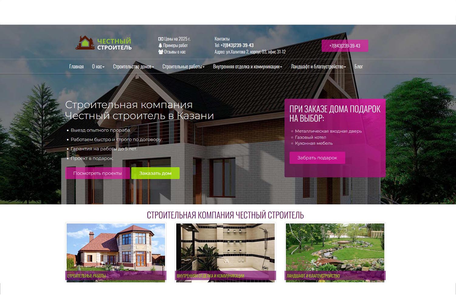 Гарантия на несущие конструкции (фундамент, стены, крыша) — 5 лет. На остальные работы (отопление, электрика, отделка, окна) — от одного до пяти лет. Записаться на консультацию можно по телефону, электронной почте, через мессенджеры или заполнив форму на официальном сайте. Офис находится в Казани и принимает клиентов по предварительной записи.