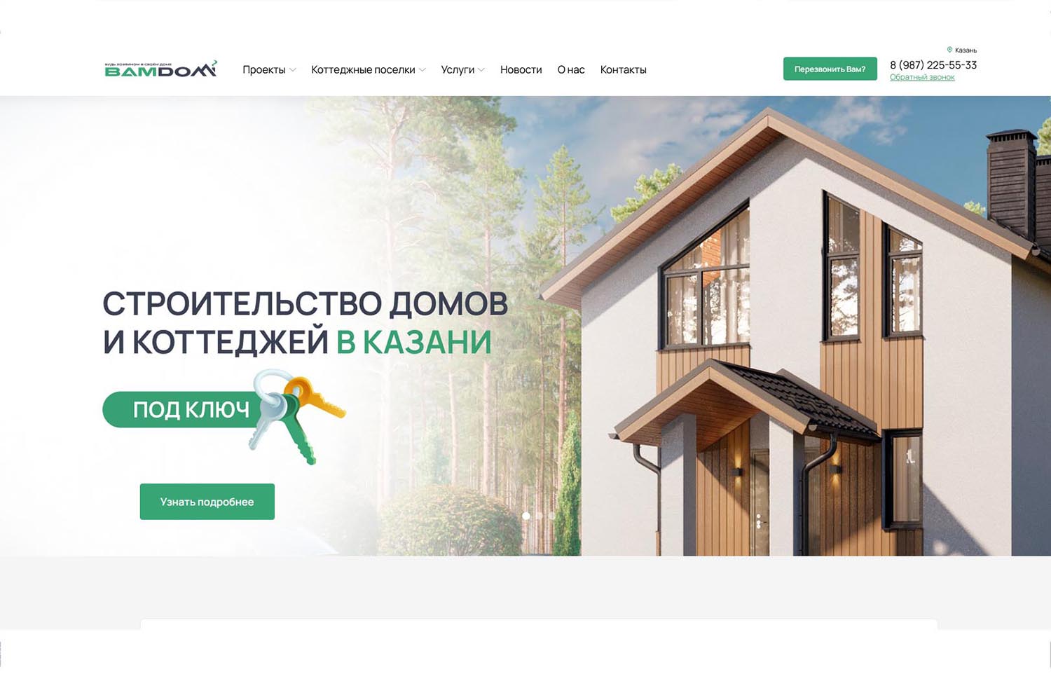 «ВамДом» — компания, которая работает с 2014 года. Фирма возводит кирпичные дома в один и два этажа в Республике Татарстан и Московской области. Также компания занимается застройкой коттеджных поселков. Для заказчиков доступна база готовых проектов, есть возможность создания индивидуального плана под потребности и финансовые возможности.