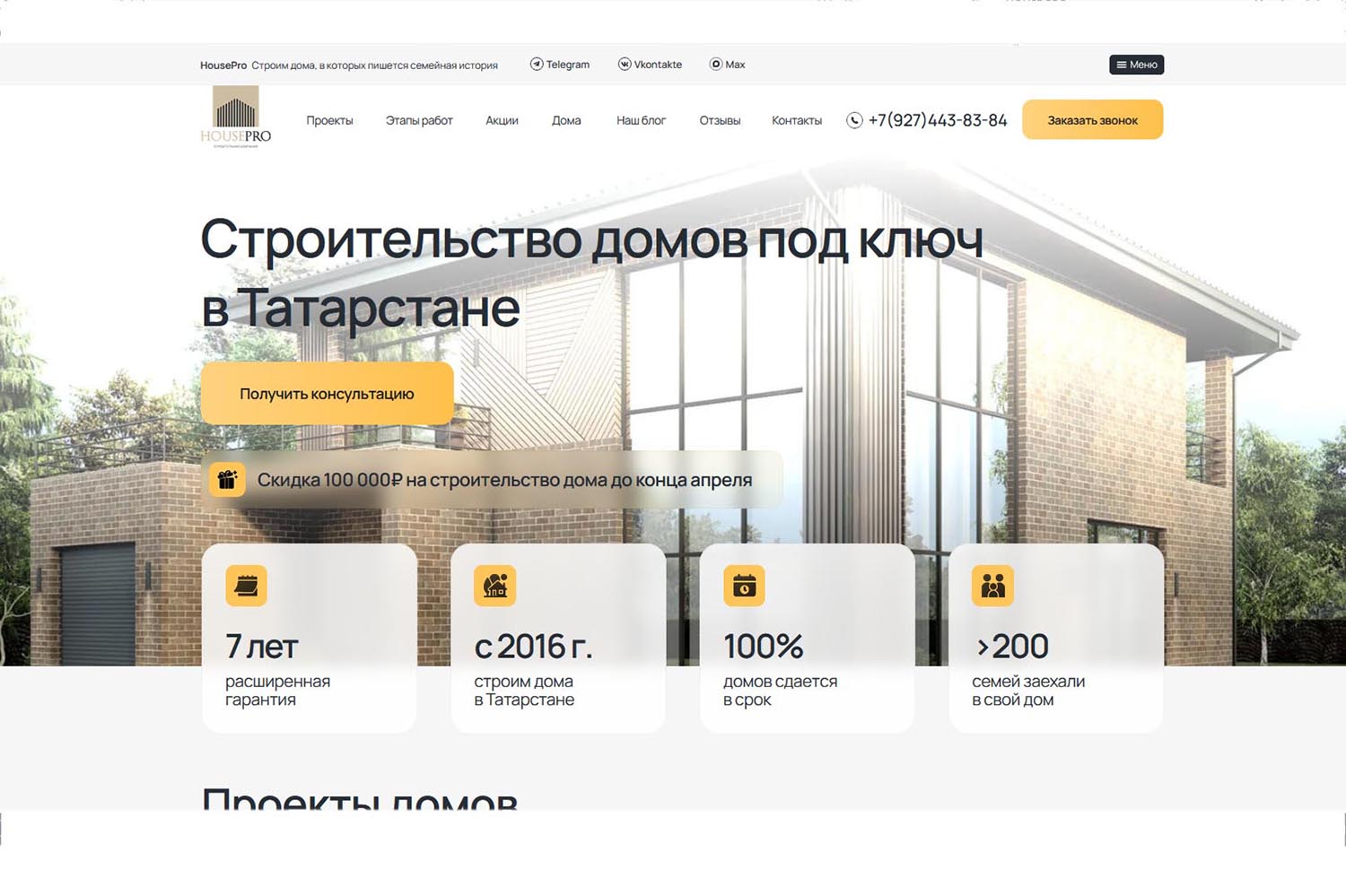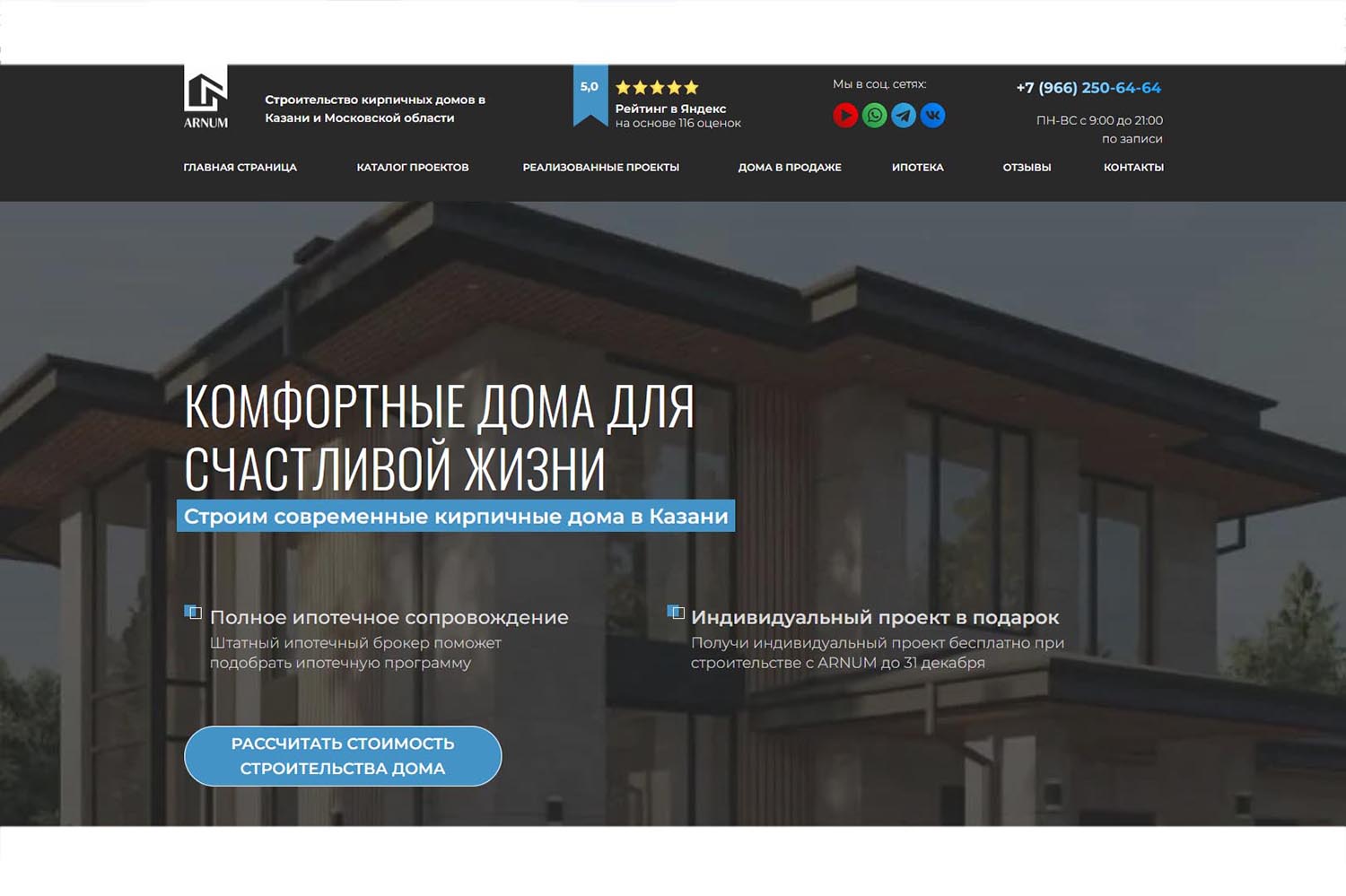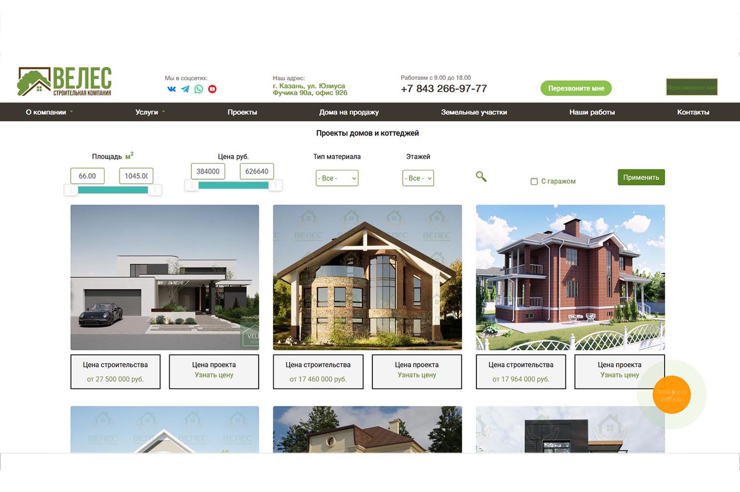 Организация помогает с оформлением ипотеки. Получить консультацию или рассчитать стоимость проекта можно по телефону, через форму на официальном сайте, в мессенджерах или лично в офисе компании в Казани.