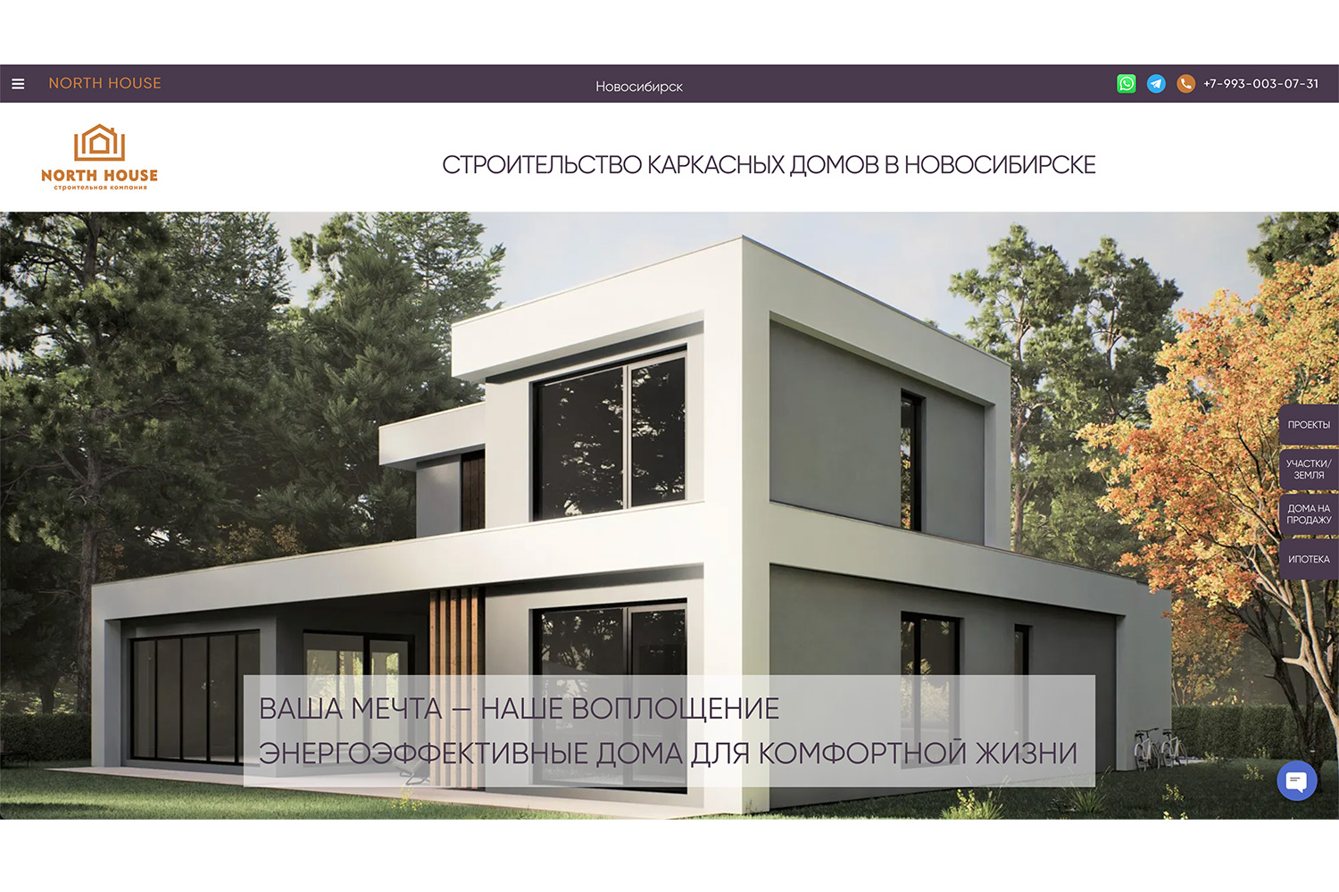 Компания «НОРТХАУС» с 2011 года строит каркасные дома в Новосибирске. Возводит одно- и двухэтажные дома в стилях «Шале», «Хай-тек», «Барнхаус», «Классический» и «Скандинавский» площадью от 56 до 322 м². Дополнительно можно заказать на участок баню, гараж или другую постройку. В среднем на возведение полноценного дома требуется три — четыре месяца, независимо от сезона.