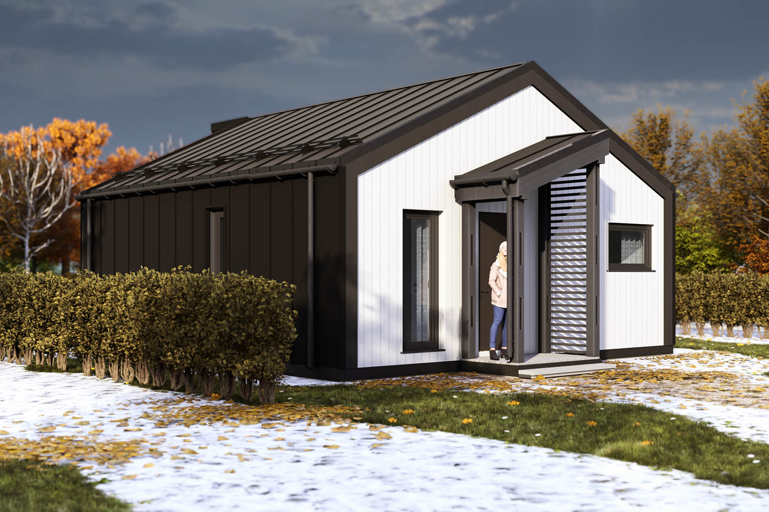 Одноэтажный дом в стиле «Барнхаус» 56 м2