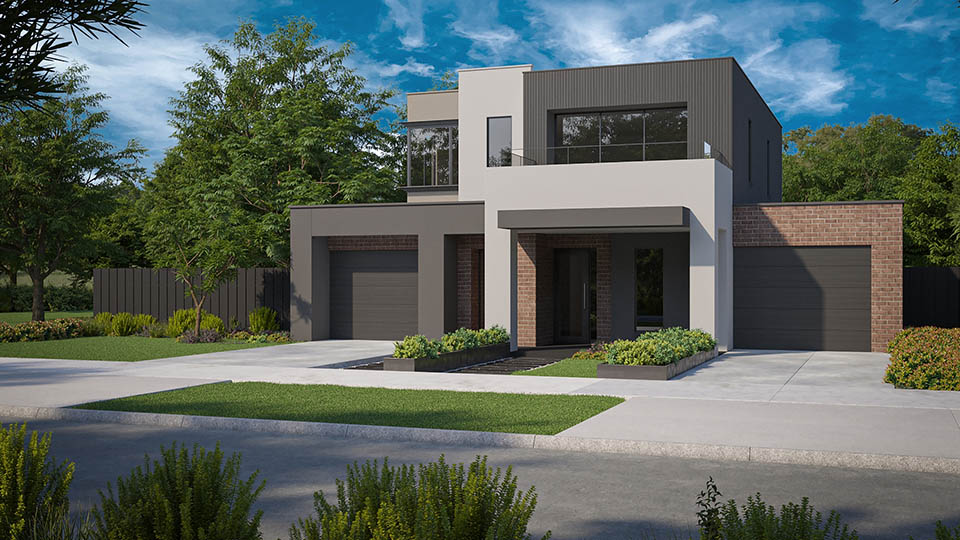Стильный современный коттедж общей площадью 156 м² для большой семьи. В двухэтажном доме три просторных комнаты, два балкона и две террасы – нижняя возле входа и верхняя над встроенным гаражом. Проект рассчитан на строительство из кирпича.