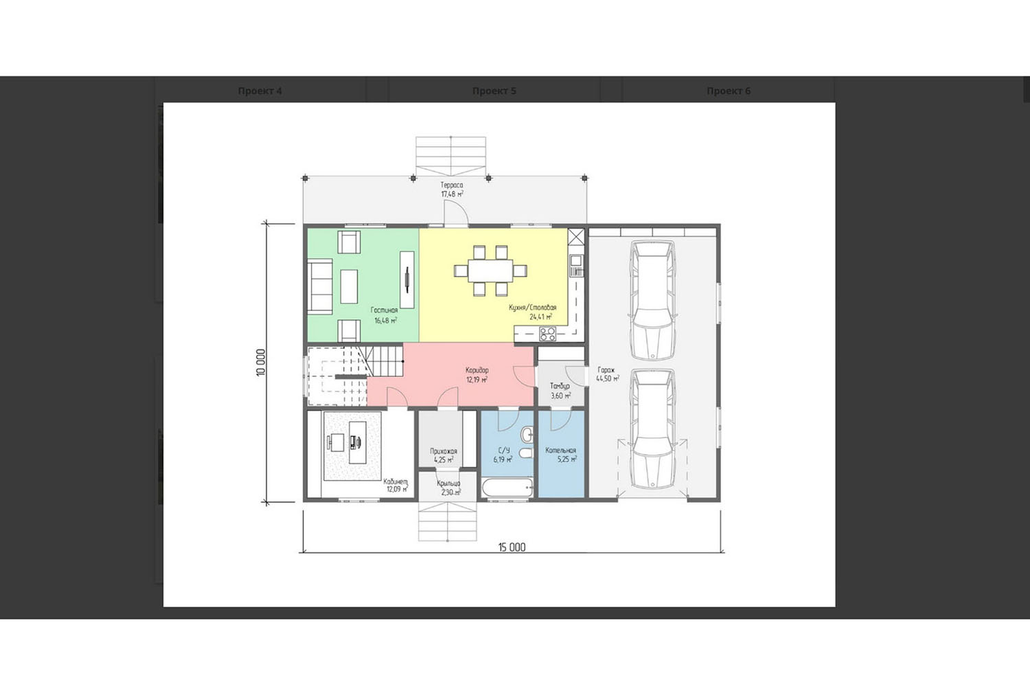 Создание проекта, расчет фундамента и варианты приобретения домокомплекта аналогичны предыдущему примеру.