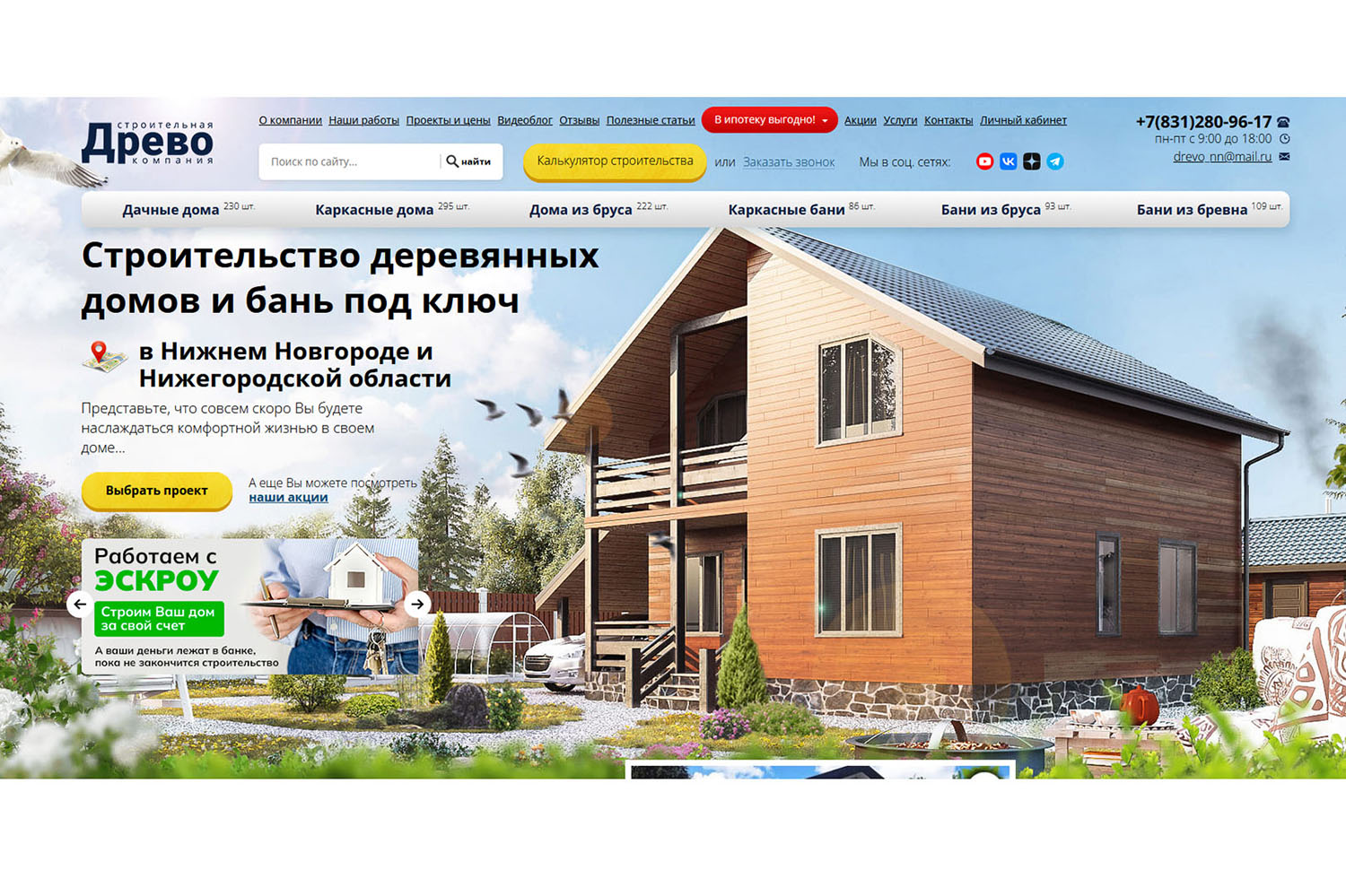 Компания с 2013 года занимается строительством частных домов и коттеджей в Нижнем Новгороде, Приволжском федеральном округе и столичных регионах. Проекты реализуются «под ключ» и включают: установку фундамента, возведение коробки, внутреннюю и внешнюю отделку, а также сдачу объекта.