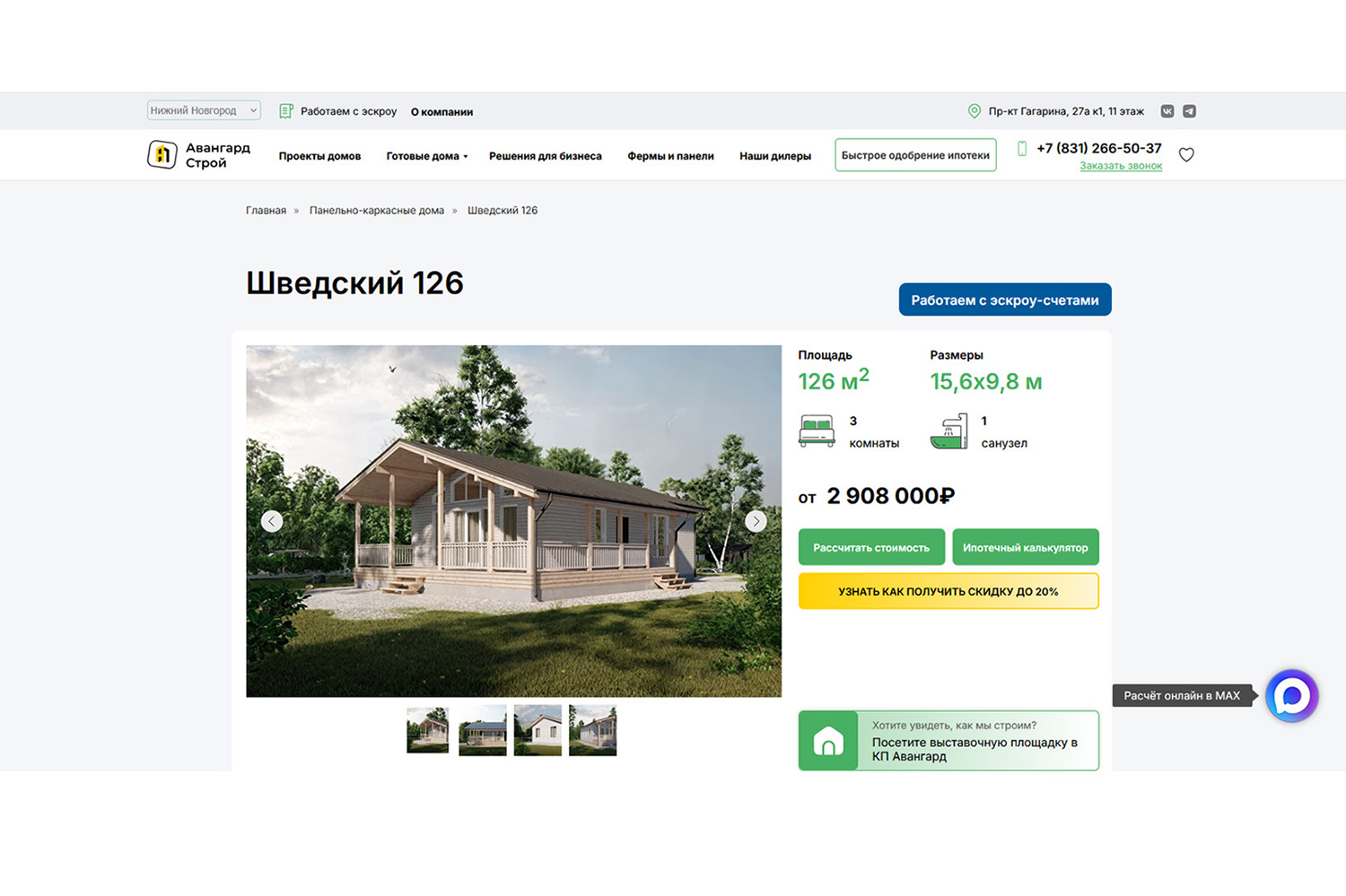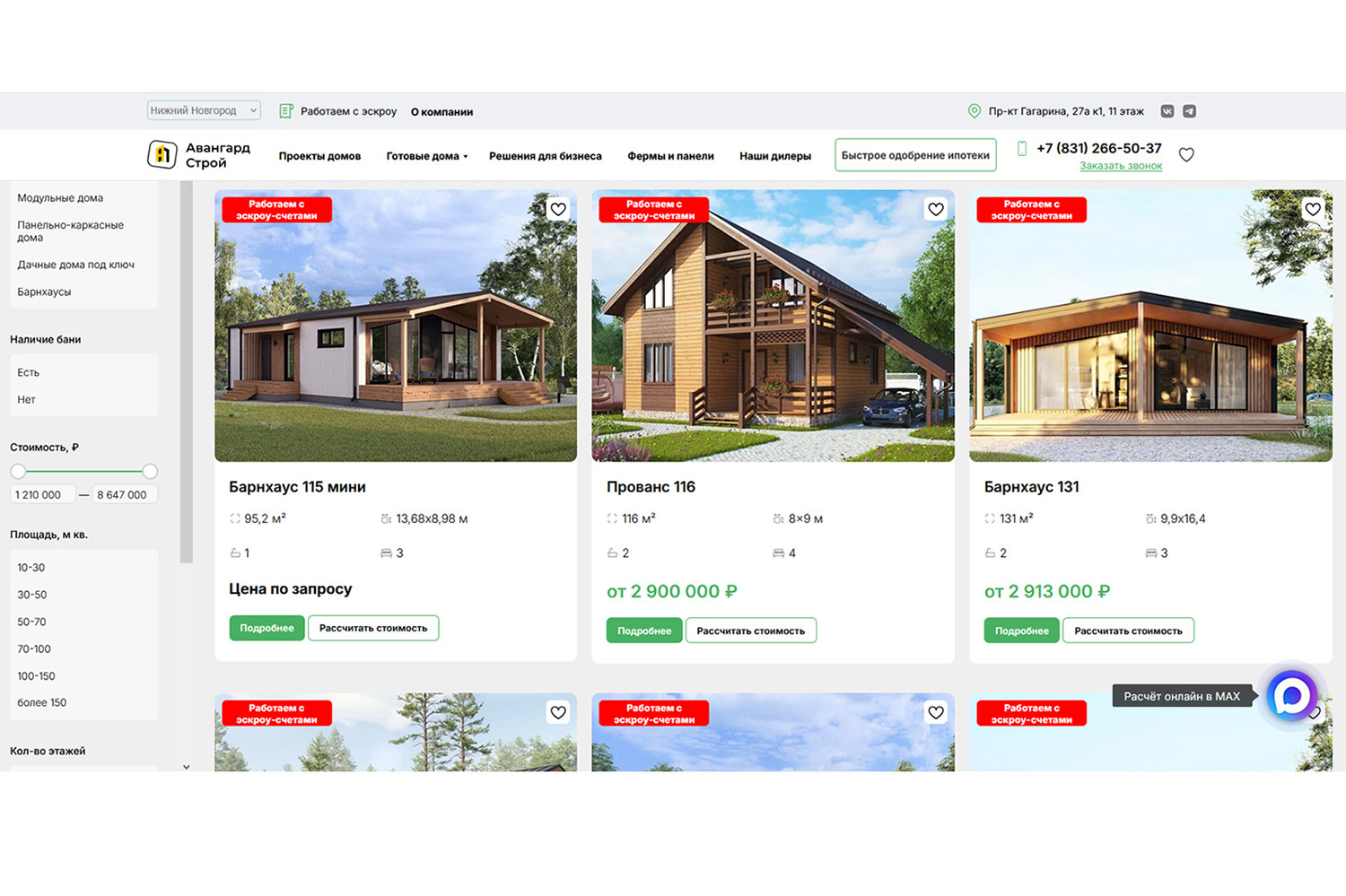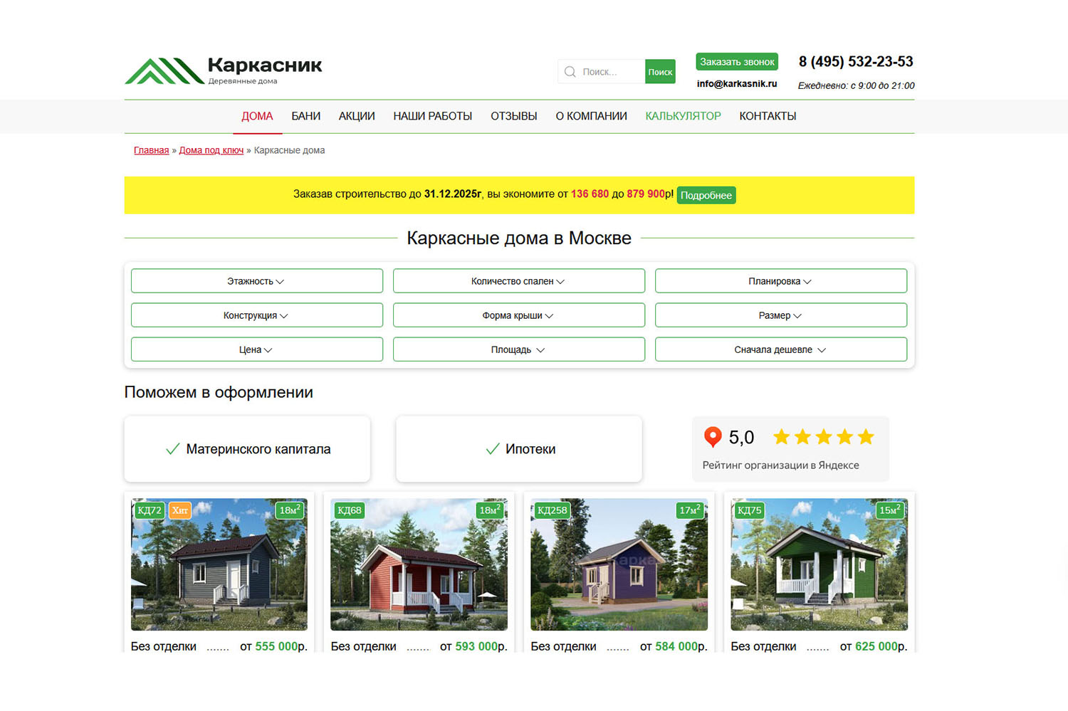Компания предлагает бонусы и скидки для каждого заказчика. Примерную стоимость дома можно рассчитать с помощью калькулятора на сайте. Через банки-партнеры клиентам доступно оформление ипотечного кредита. Связаться с представителем компании можно по многоканальному телефону и электронной почте.