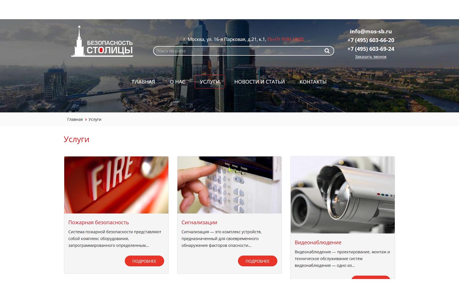 «Безопасность столицы» работает в Москве и Московской области более 15 лет. Сотрудничает как с небольшими компаниями (магазины, автосервисы), так и с крупными предприятиями (заводы, институты, офисные центры, ритейлеры).