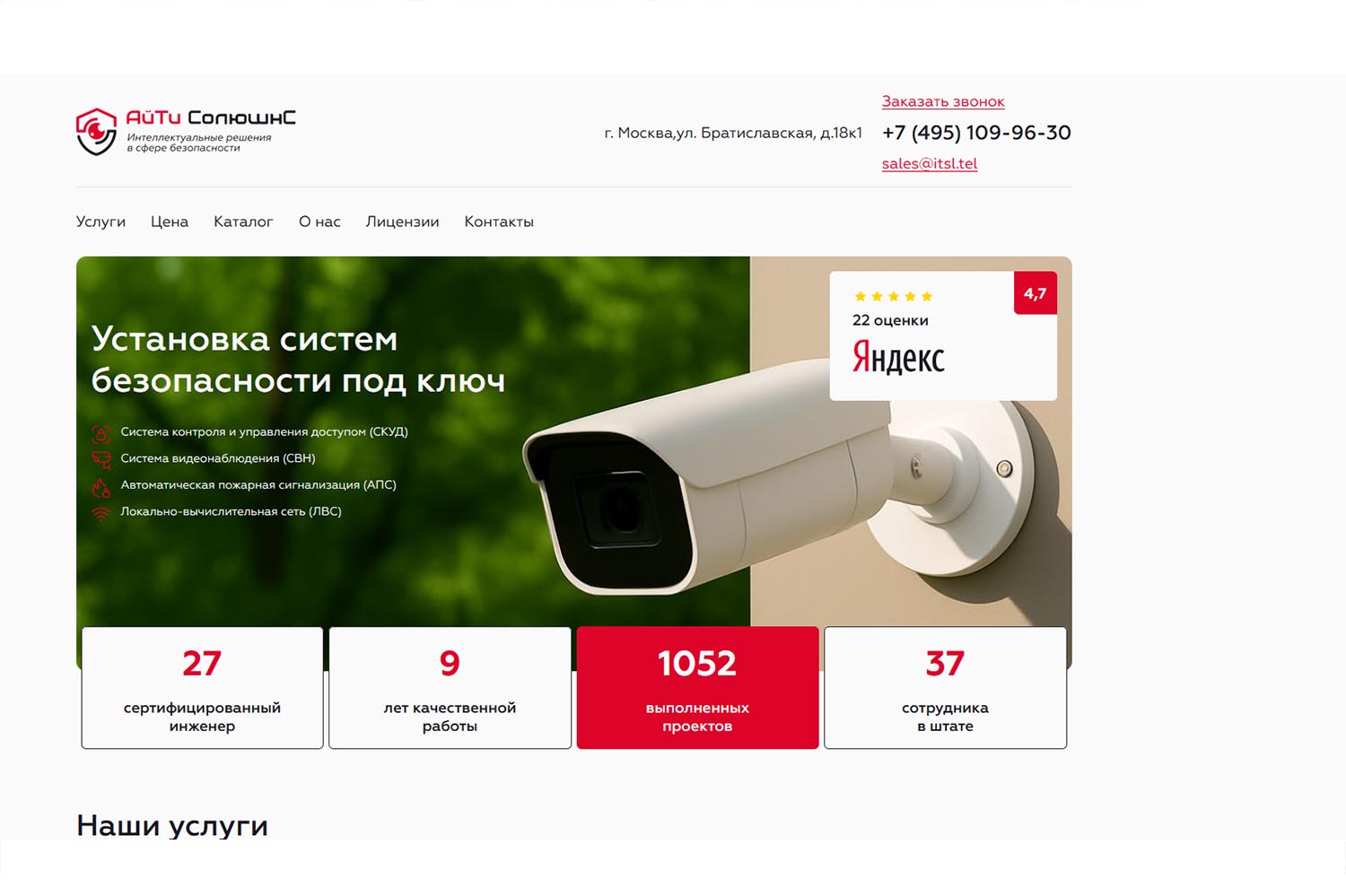 - Обучение персонала заказчика работе с системами безопасности.