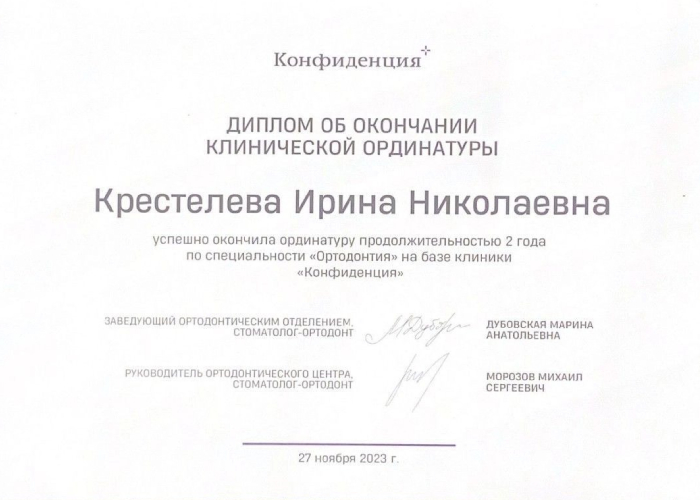 2024 г. – Санкт-Петербургский государственный университет (СпбГУ). Ортодонтия. Ординатура.