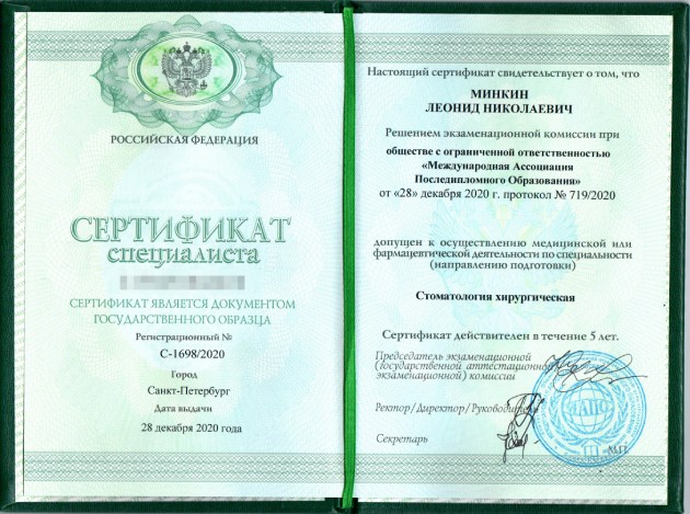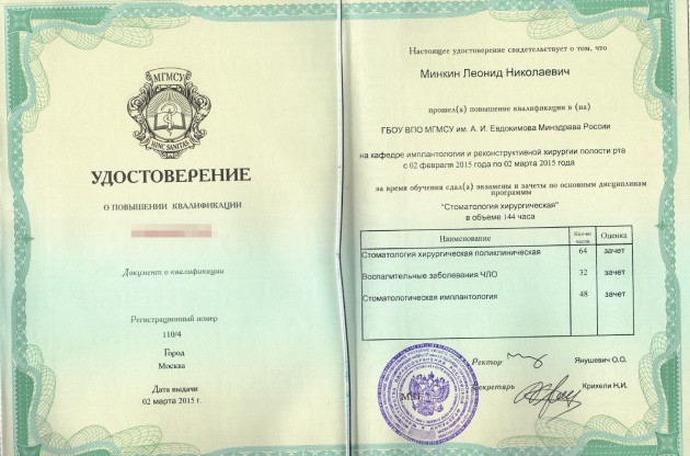2015 г. — Московский государственный медико-стоматологический университет Евдокимова (стоматология хирургическая — повышение квалификации)