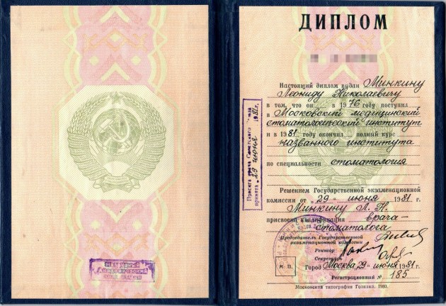 1981 г. — Московский государственный медико-стоматологический университет Евдокимова (стоматология — базовое образование)