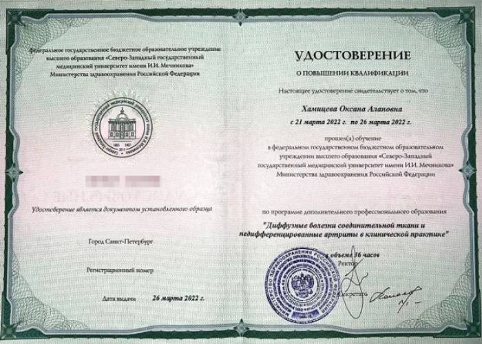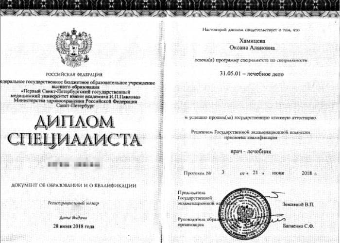 2018 г. - Санкт-Петербургский государственный медицинский университет им. акад. И.П. Павлова (лечебное дело)