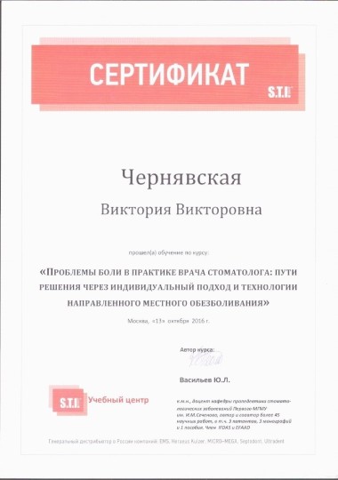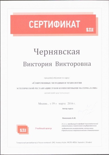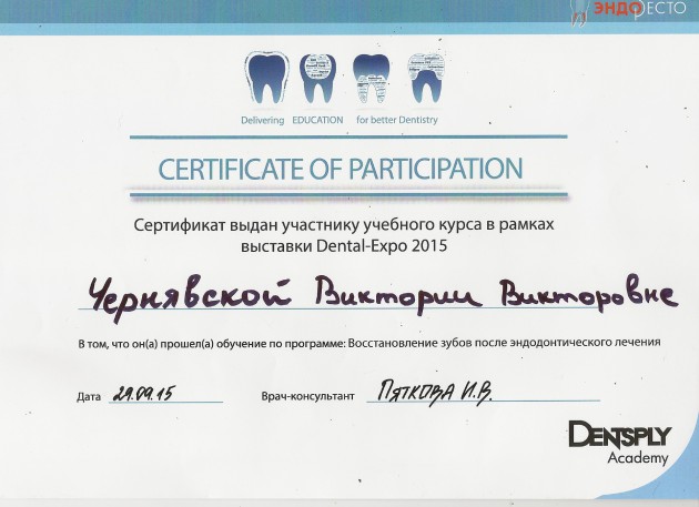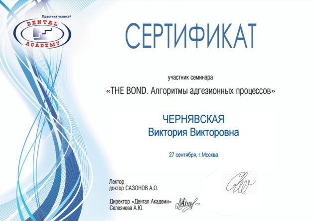 2015 г. — профессиональная переподготовка по специальности «Стоматология ортопедическая»