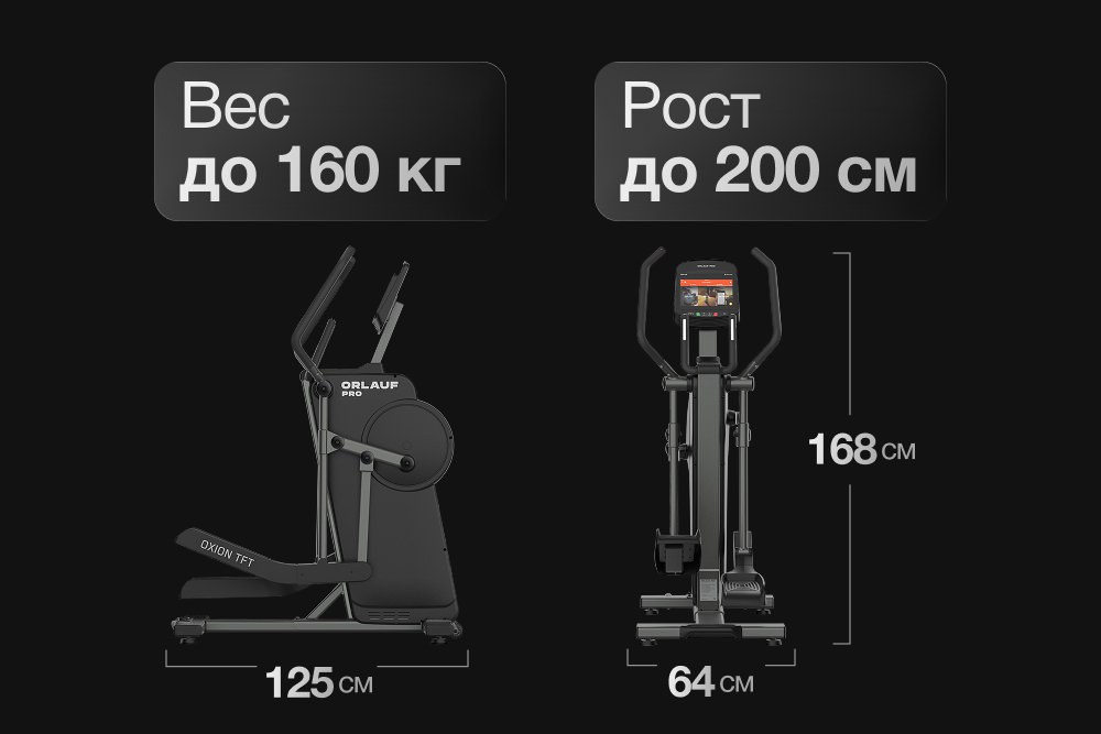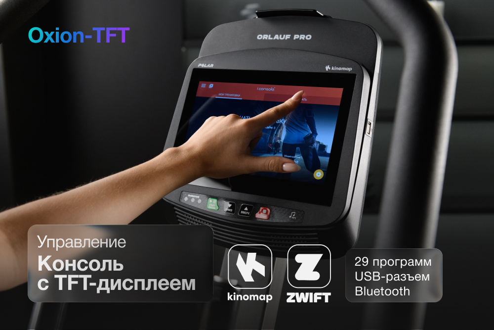 Orlauf PRO Oxion TFT — полупрофессиональный эллипсоид премиум-класса. Несмотря на впечатляющие характеристики, модель обладает компактными размерами (125×64×168). Она объединяет высокую производительность и тщательно продуманную эргономику для результативных занятий.