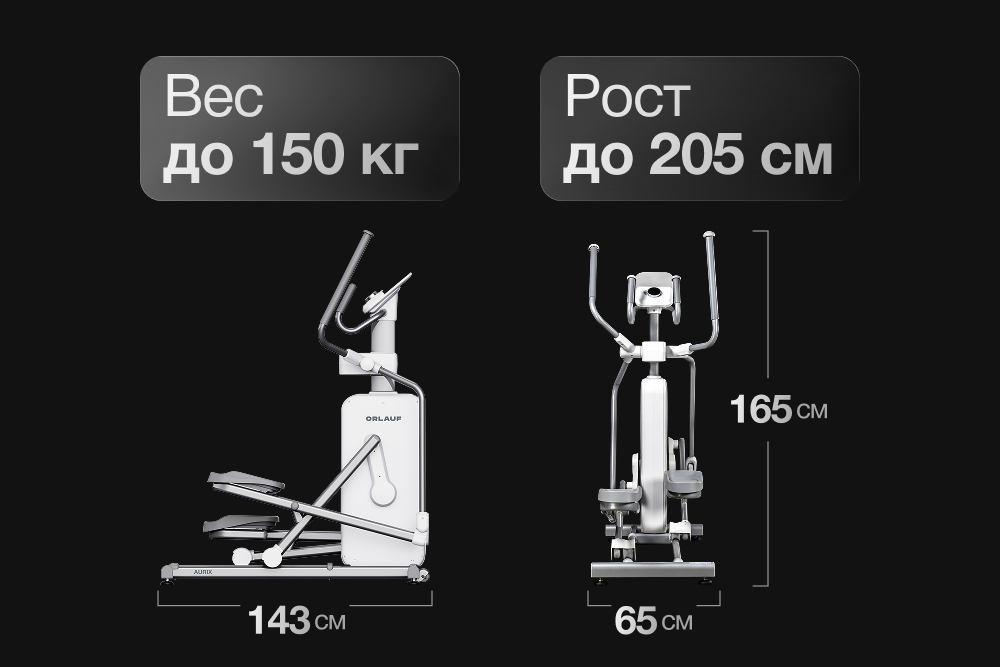 - Габаритные орбитреки более надежные и устойчивые. Они поддерживают высокую интенсивность тренировок и рассчитаны на пользователей с большим весом (150–200 кг и выше).