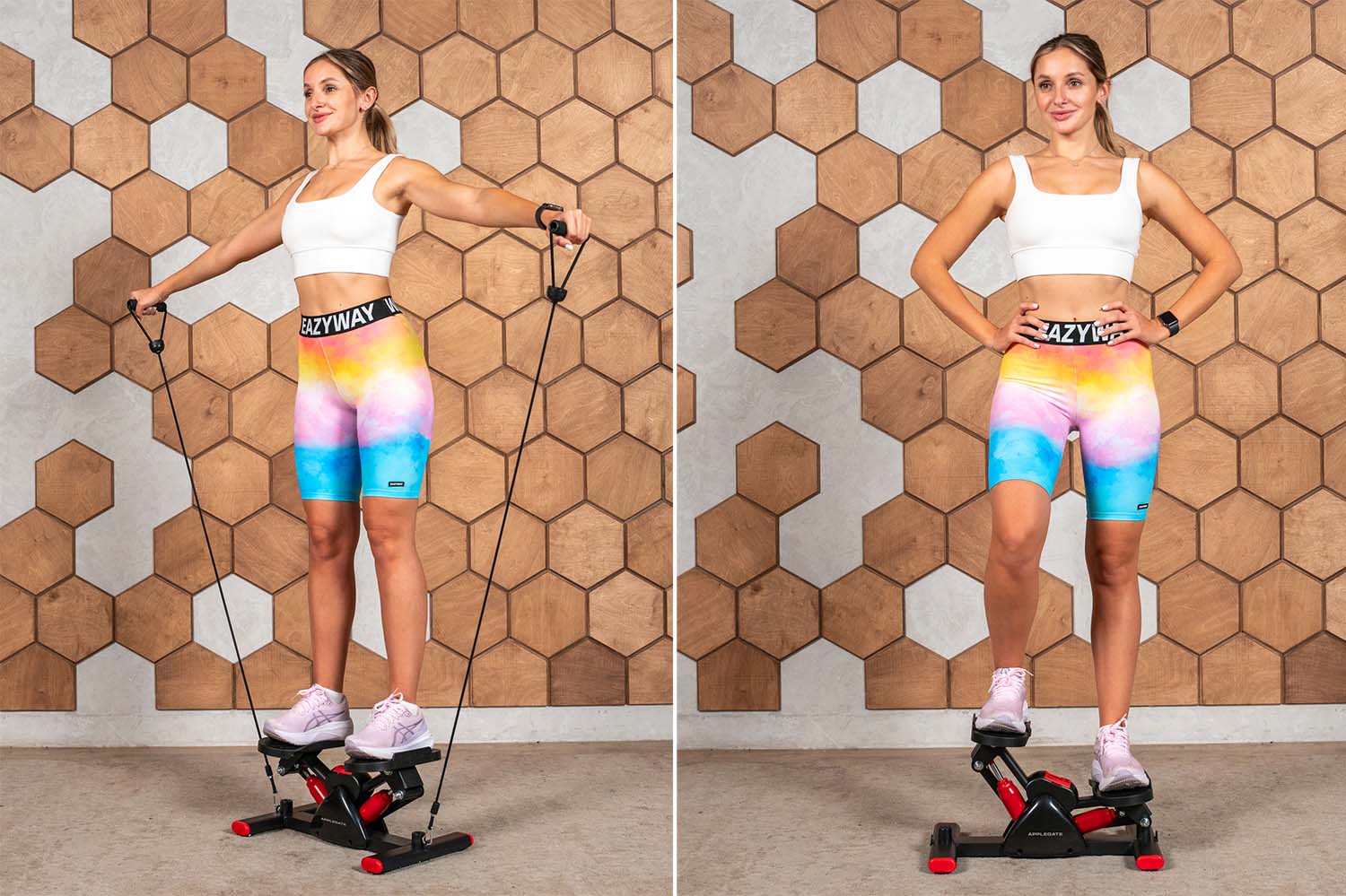 Эффект полноценной тренировки дополняют эспандеры (входят в комплект), которые позволяют проработать верхнюю часть тела. Таким образом, нагрузка распределяется комплексно, что помогает быстрее достигать желаемой физической формы.