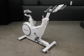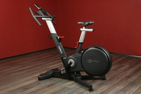 Спин-байк с прочной рамой предназначен для интенсивных тренировок и подходит как для домашнего использования, так и для коммерческих залов. Тренажер использует колодочную систему торможения с маховиком весом 22 кг, что обеспечивает плавный ход и приближает ощущения к езде на шоссейном велосипеде.